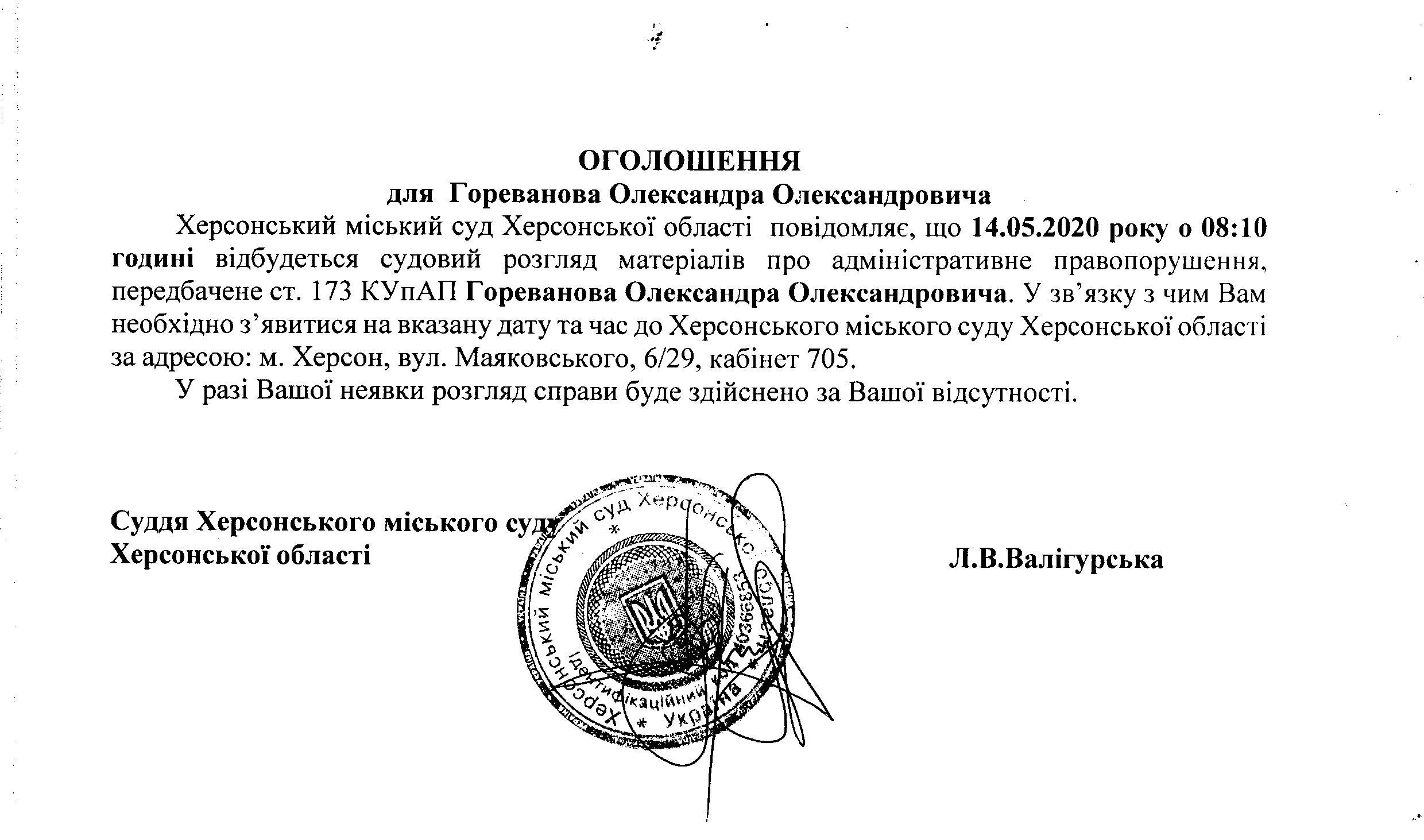 ОГОЛОШЕННЯ для Гореванова Олександра Олександровича