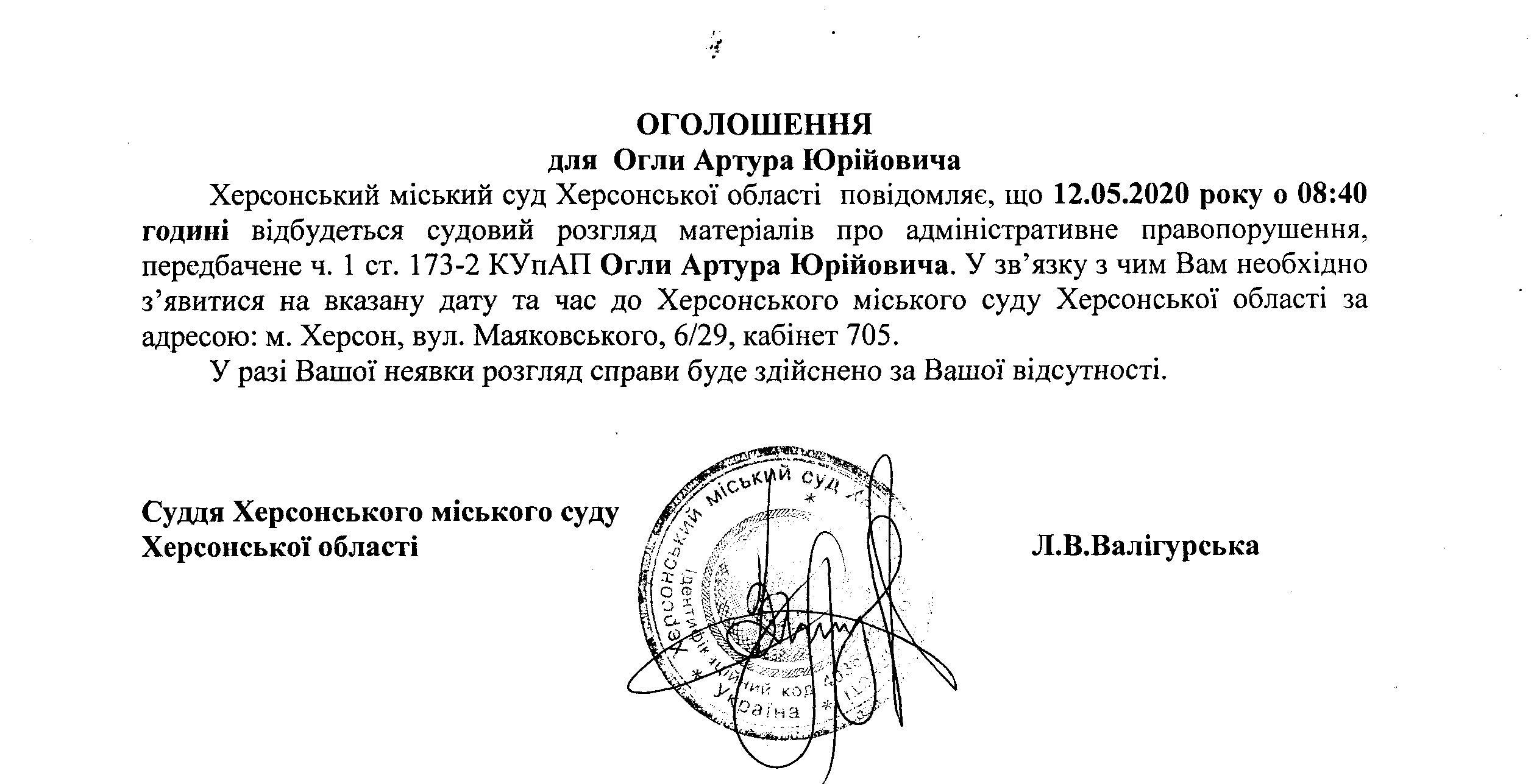 ОГОЛОШЕННЯ для Огли Артура Юрійовича