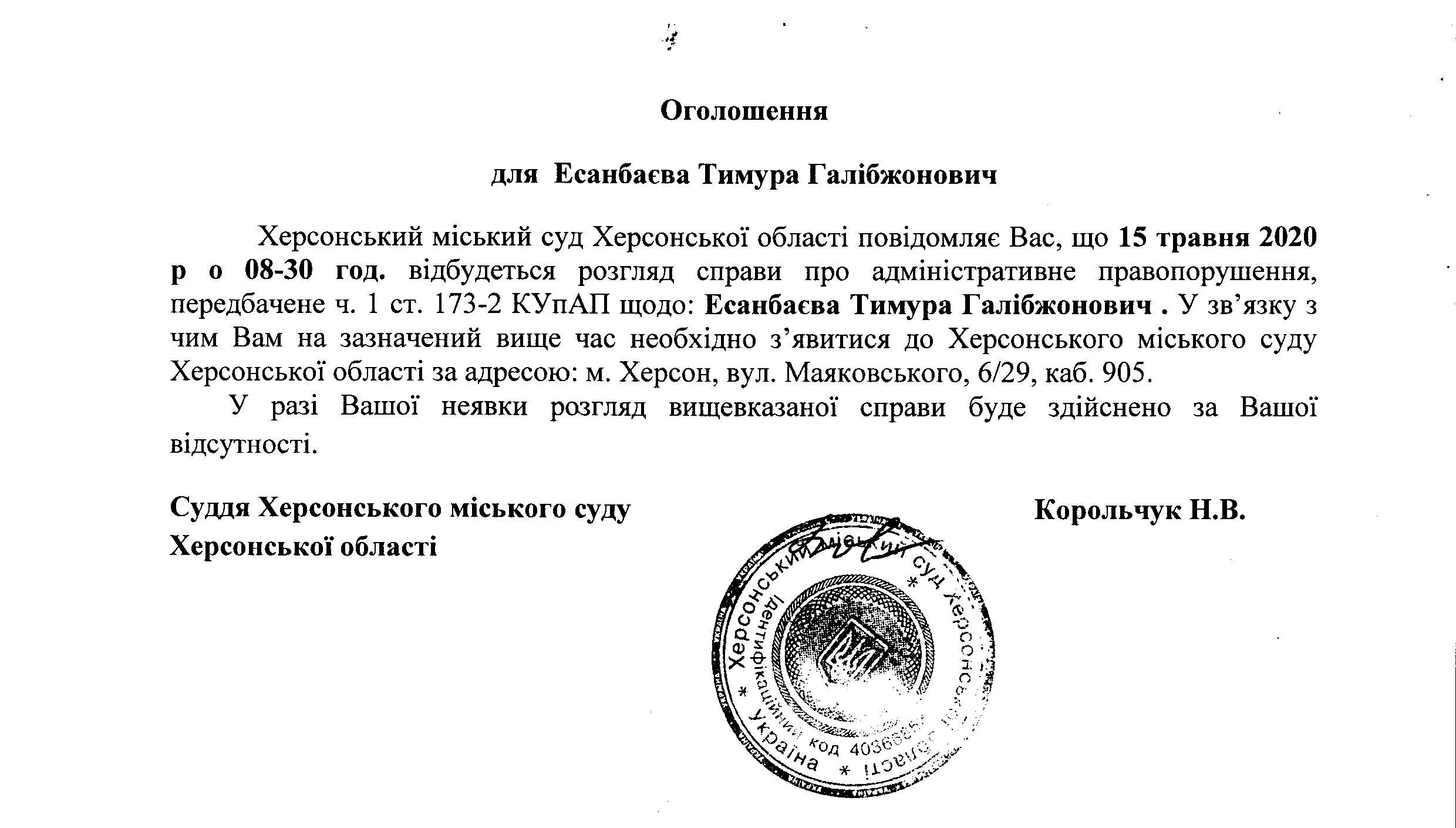 ОГОЛОШЕННЯ для Есанбаєва Тимура Галібжонович