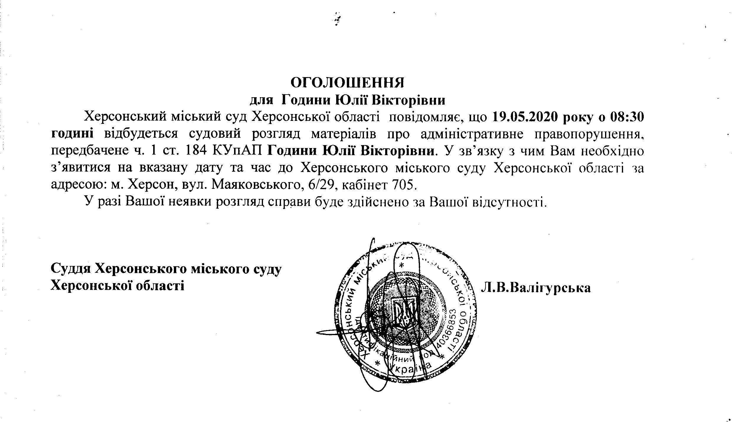 ОГОЛОШЕННЯ для Години Юлії Вікторівни