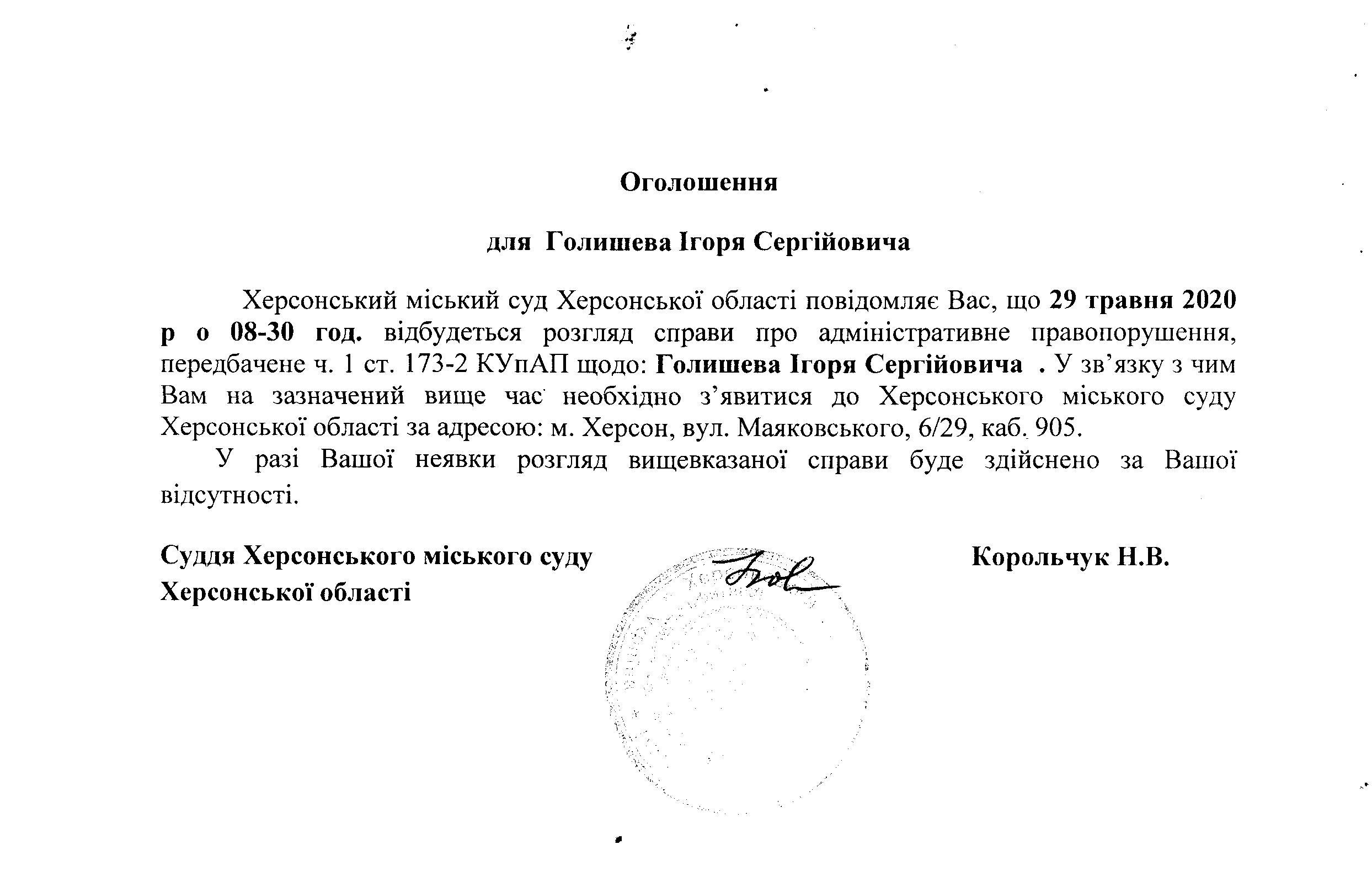 ОГОЛОШЕННЯ для Голишева Ігоря Сергійовича