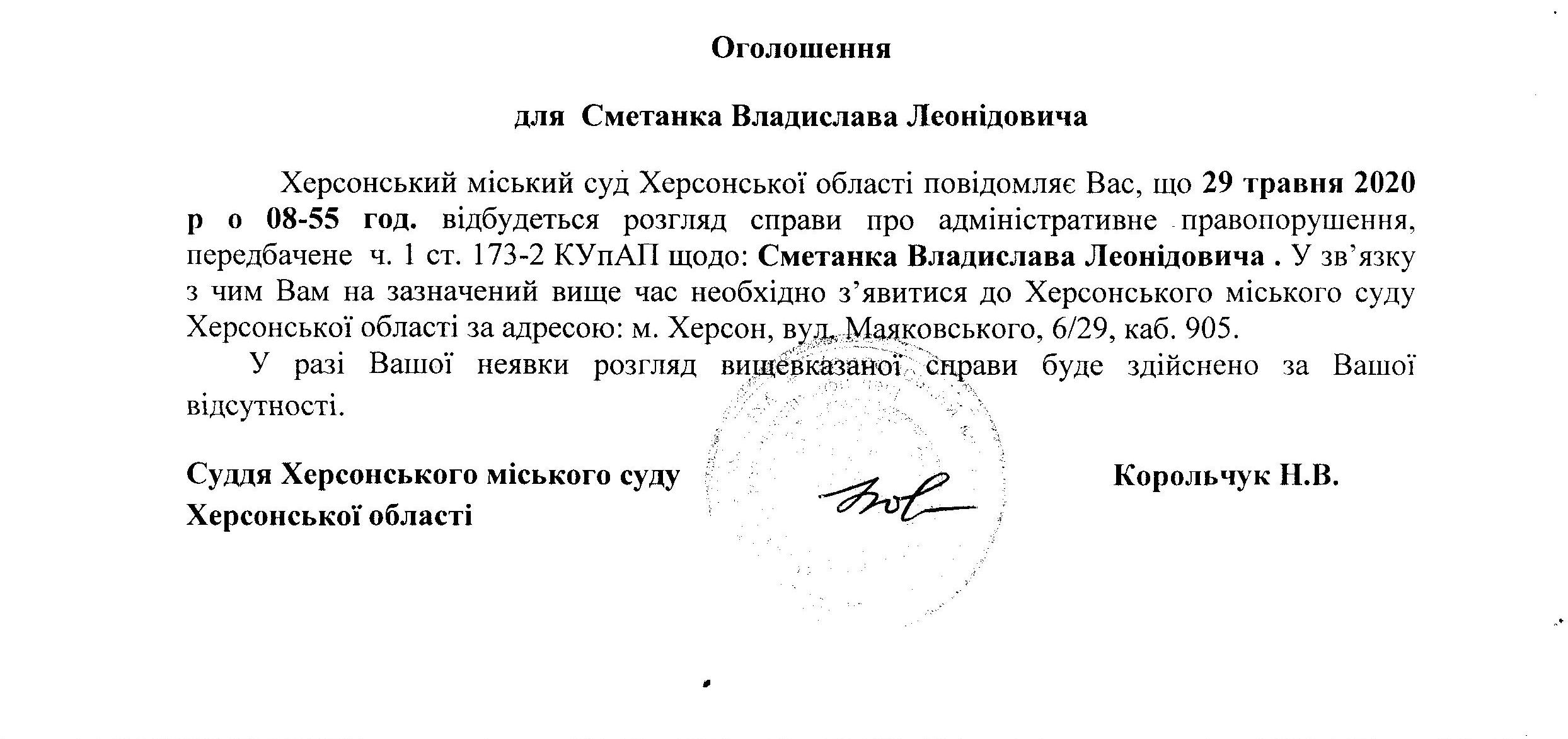 ОГОЛОШЕННЯ ПРО ВИКЛИК ДО СУДУ