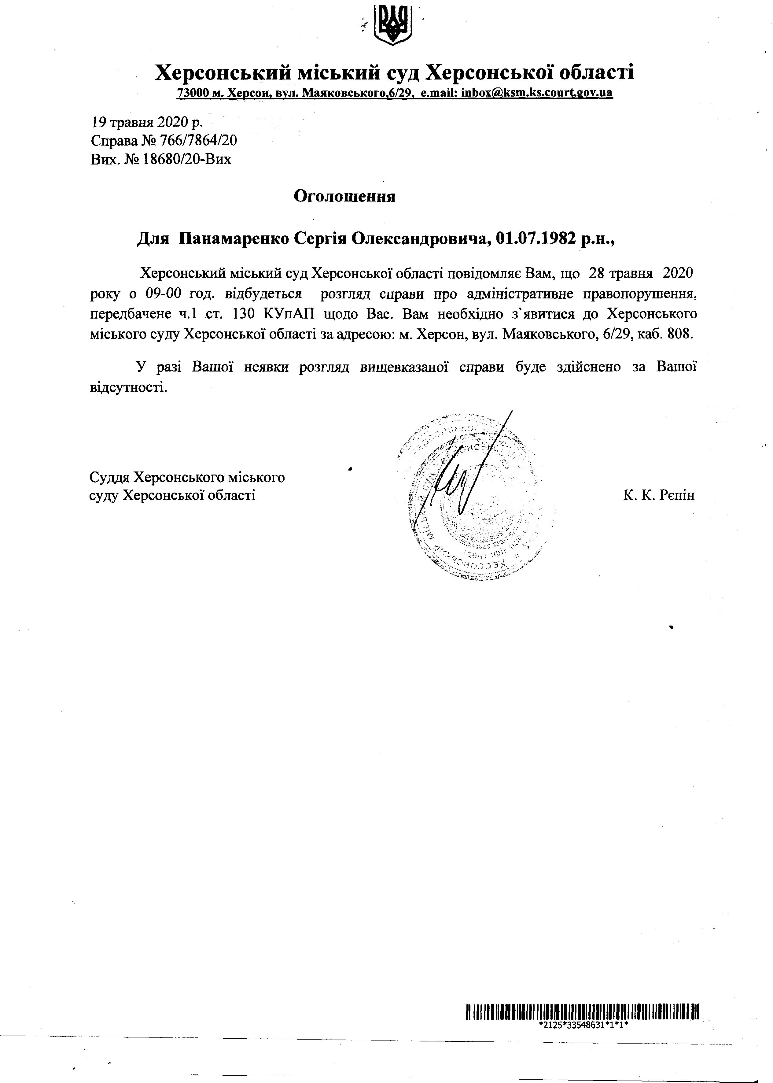 ОГОЛОШЕННЯ для Панамаренко Сергія Олександровича