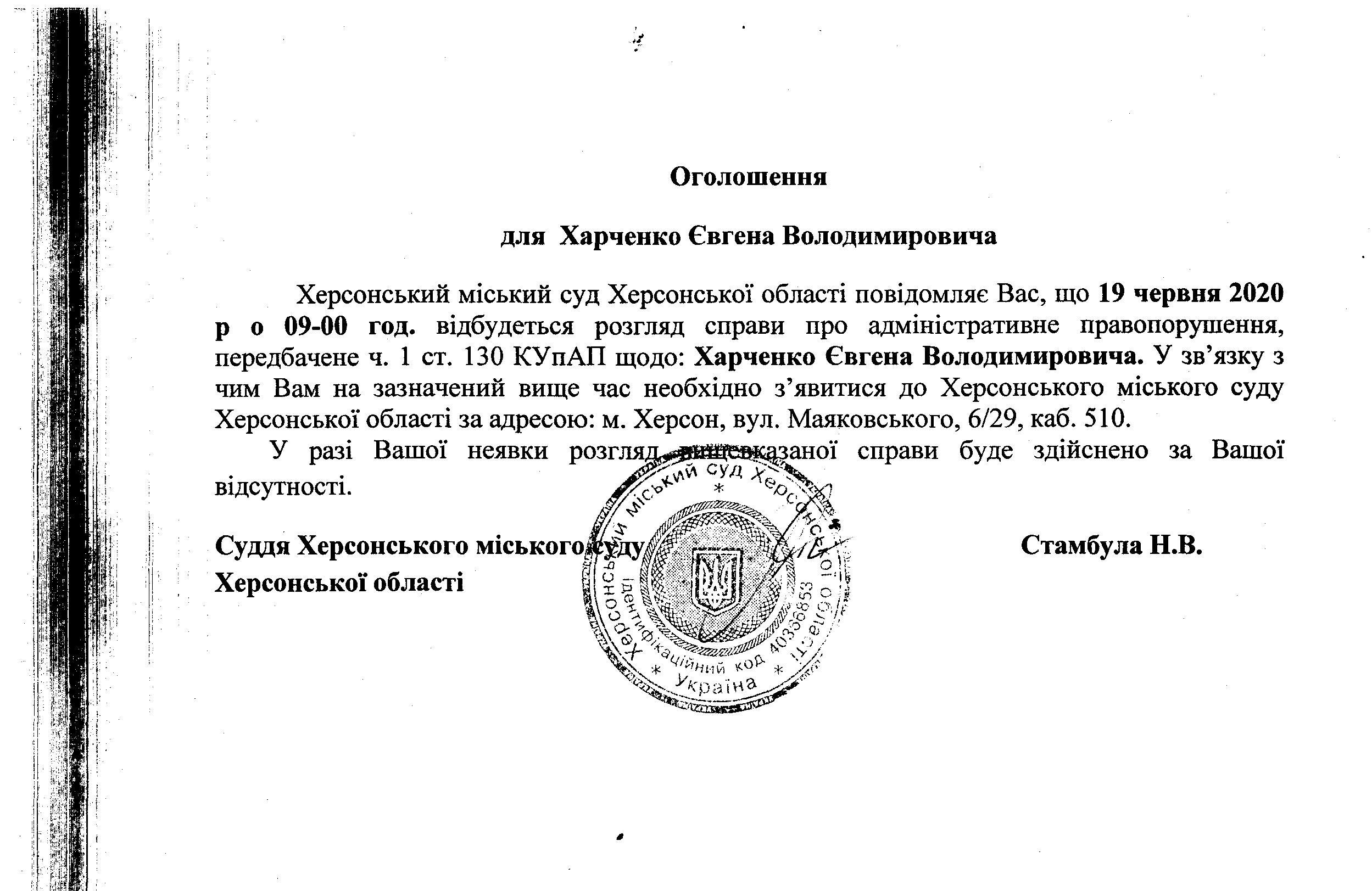 ОГОЛОШЕННЯ для Харченко Євгена Володимировича