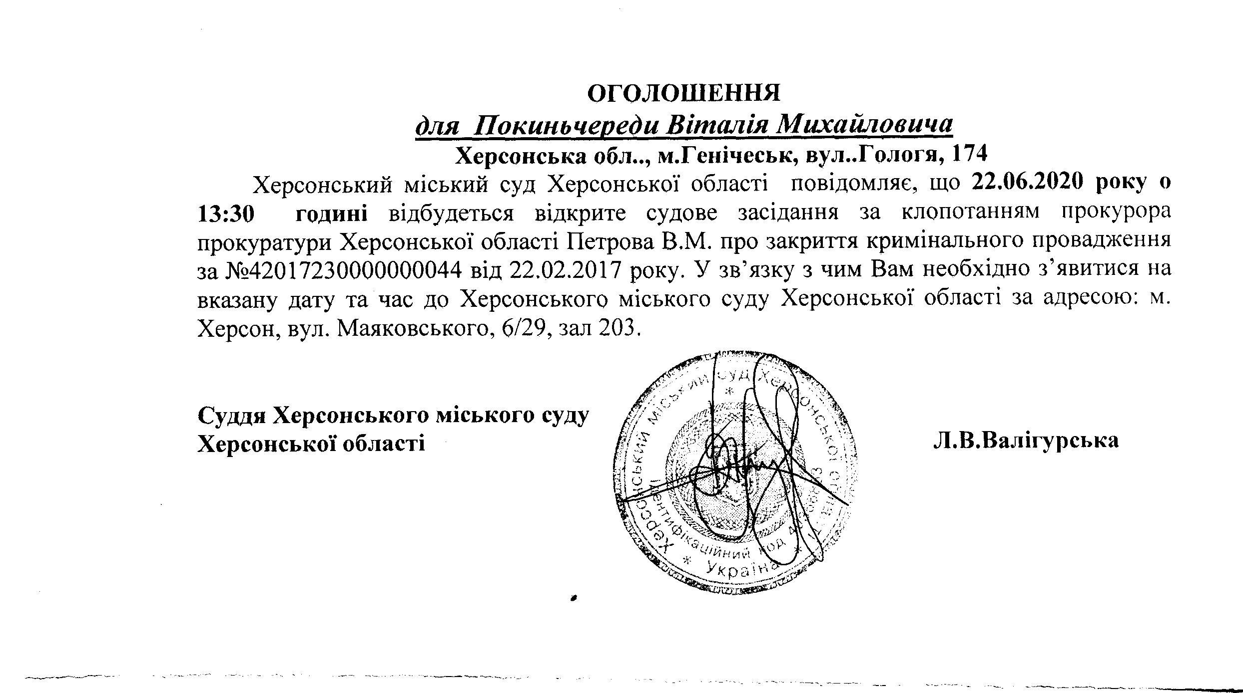 ОГОЛОШЕННЯ для Покиньчереди Віталія Михайловича