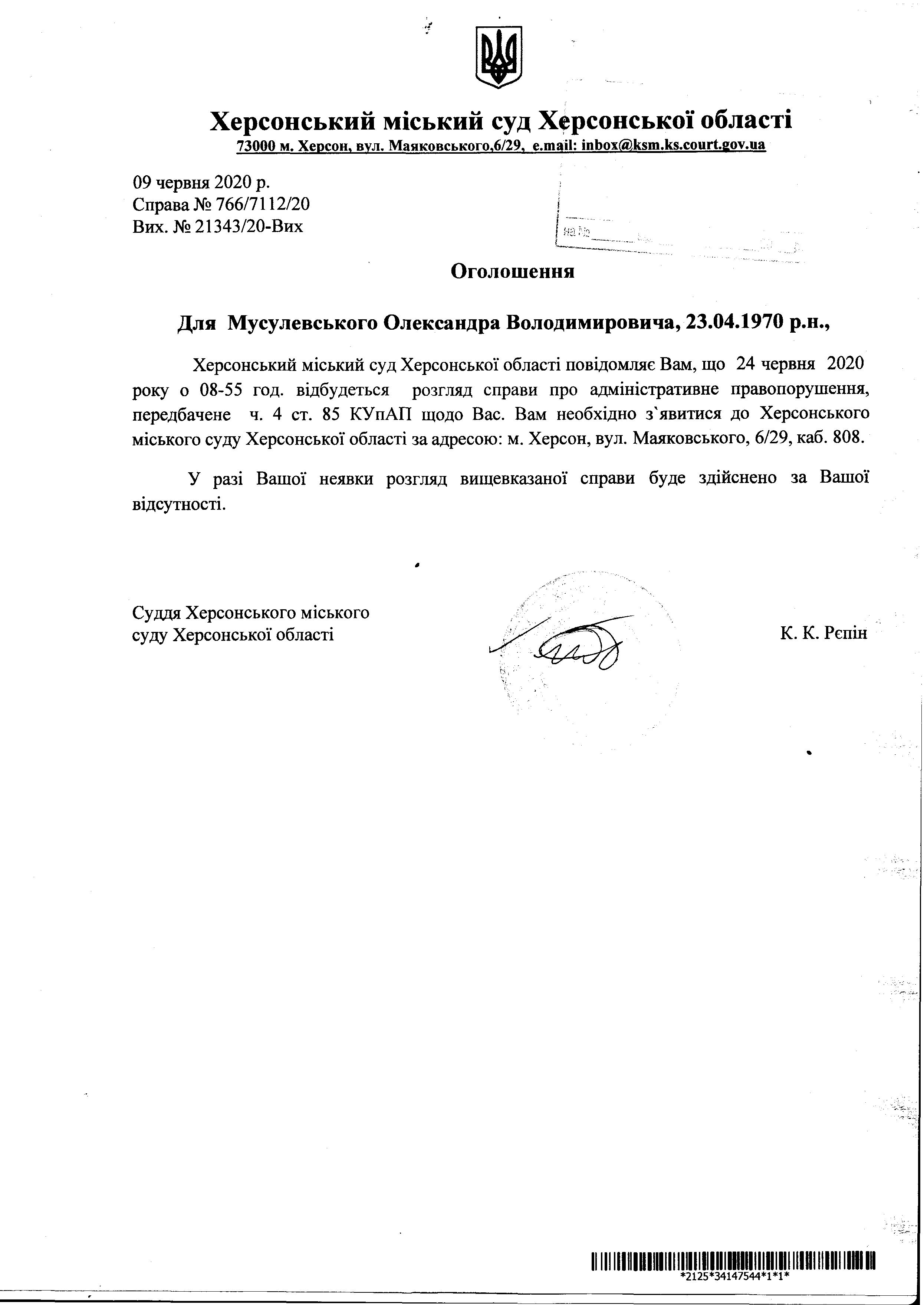ОГОЛОШЕННЯ для Мусулевського Олександра Володимировича