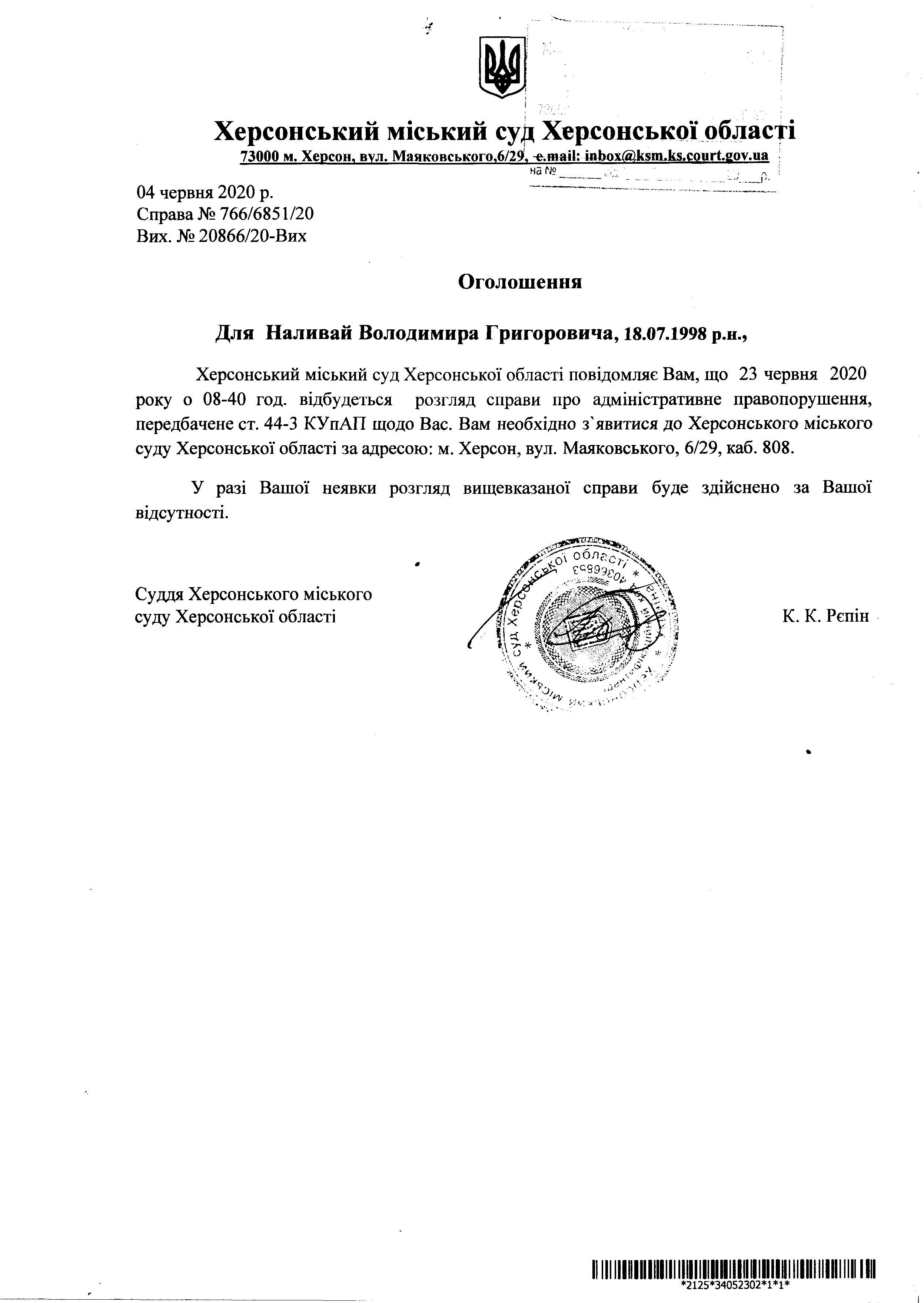 ОГОЛОШЕННЯ ПРО ВИКЛИК ДО СУДУ
