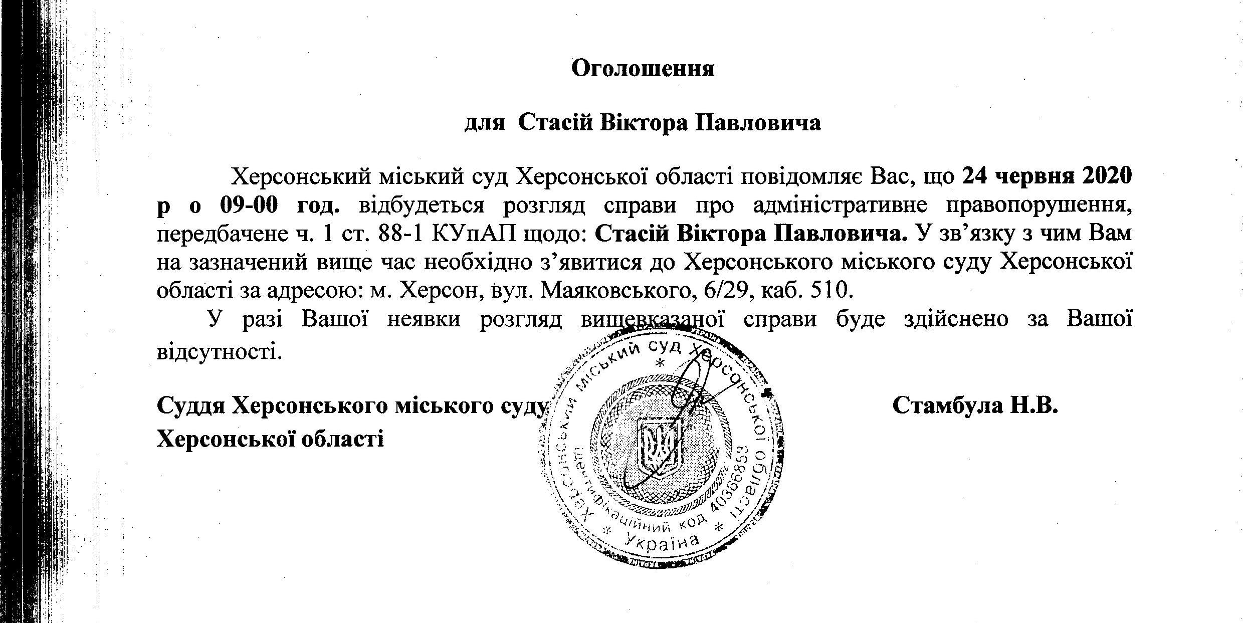 ОГОЛОШЕННЯ для Стасій Віктора Павловича
