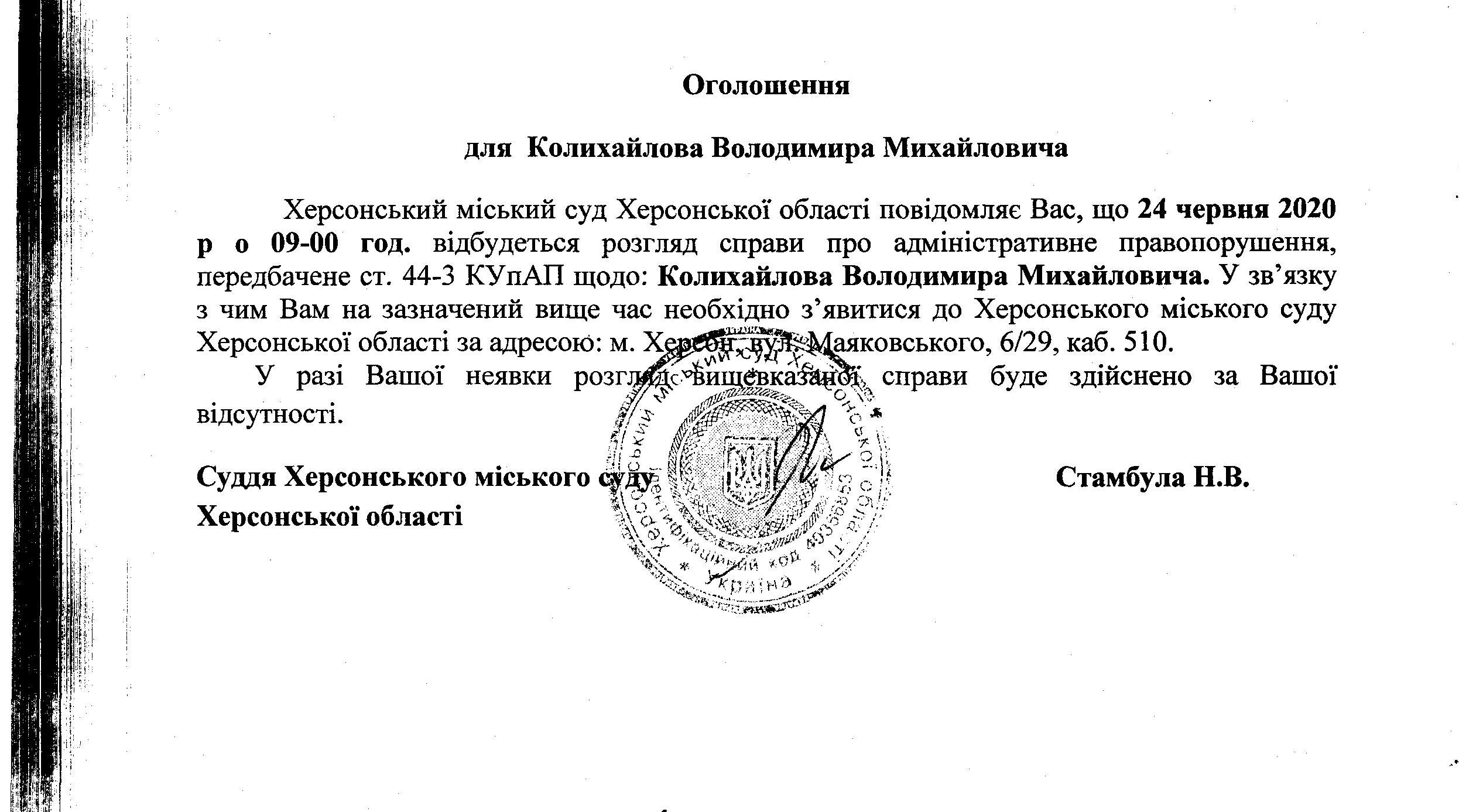ОГОЛОШЕННЯ для Колихайлова Володимира Михайловича