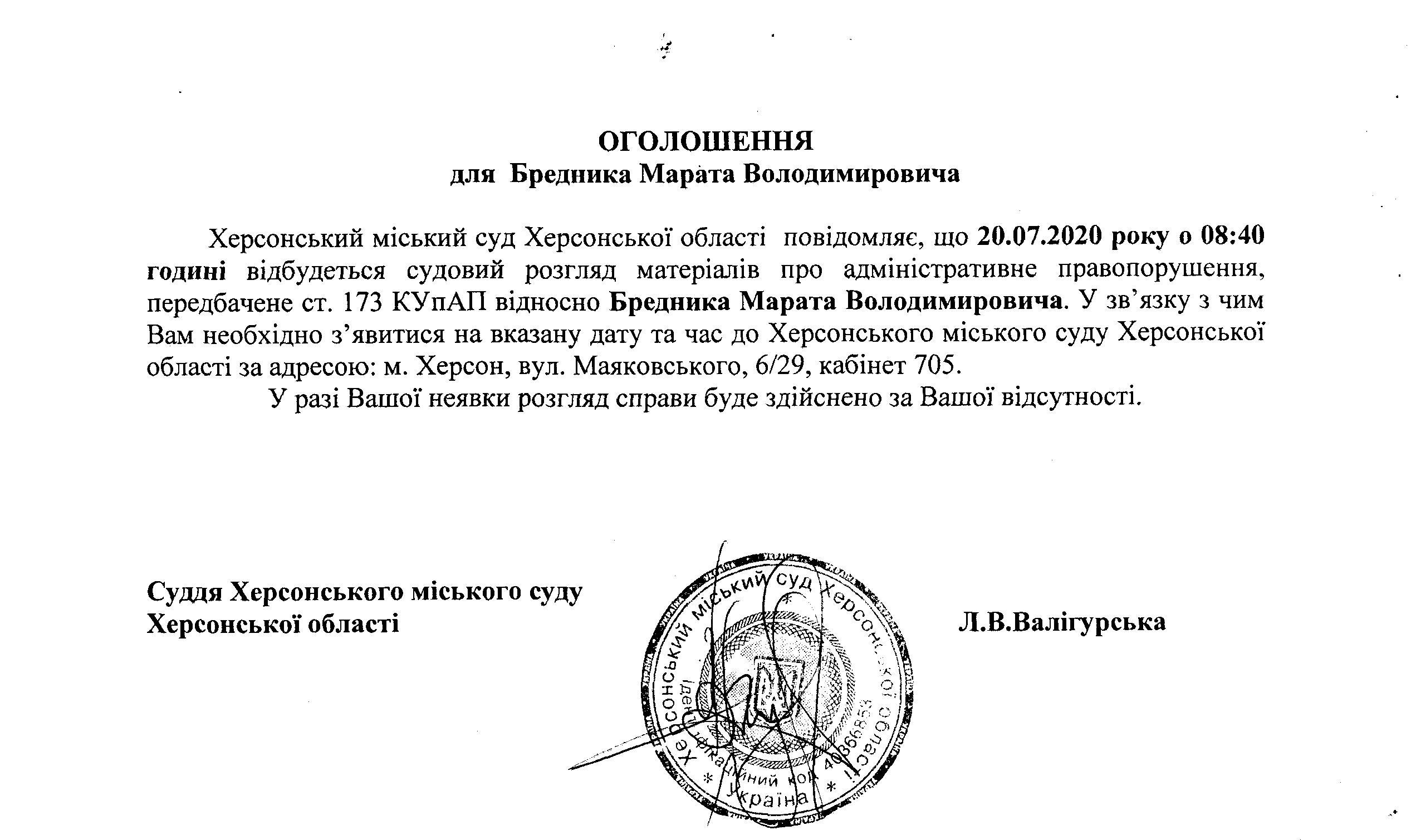 ОГОЛОШЕННЯ для Бредника Марата Володимировича