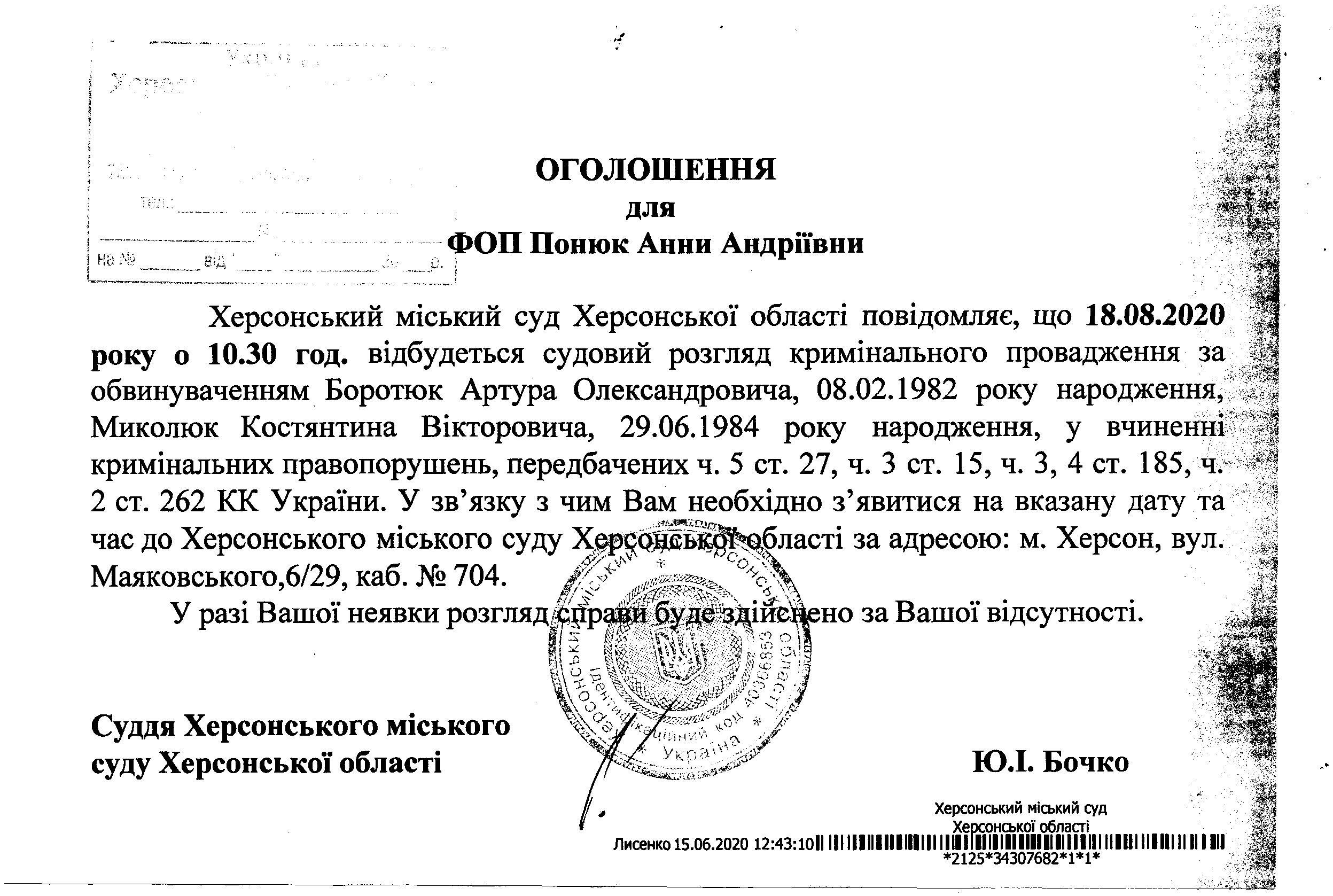 ОГОЛОШЕННЯ ПРО ВИКЛИК ДО СУДУ