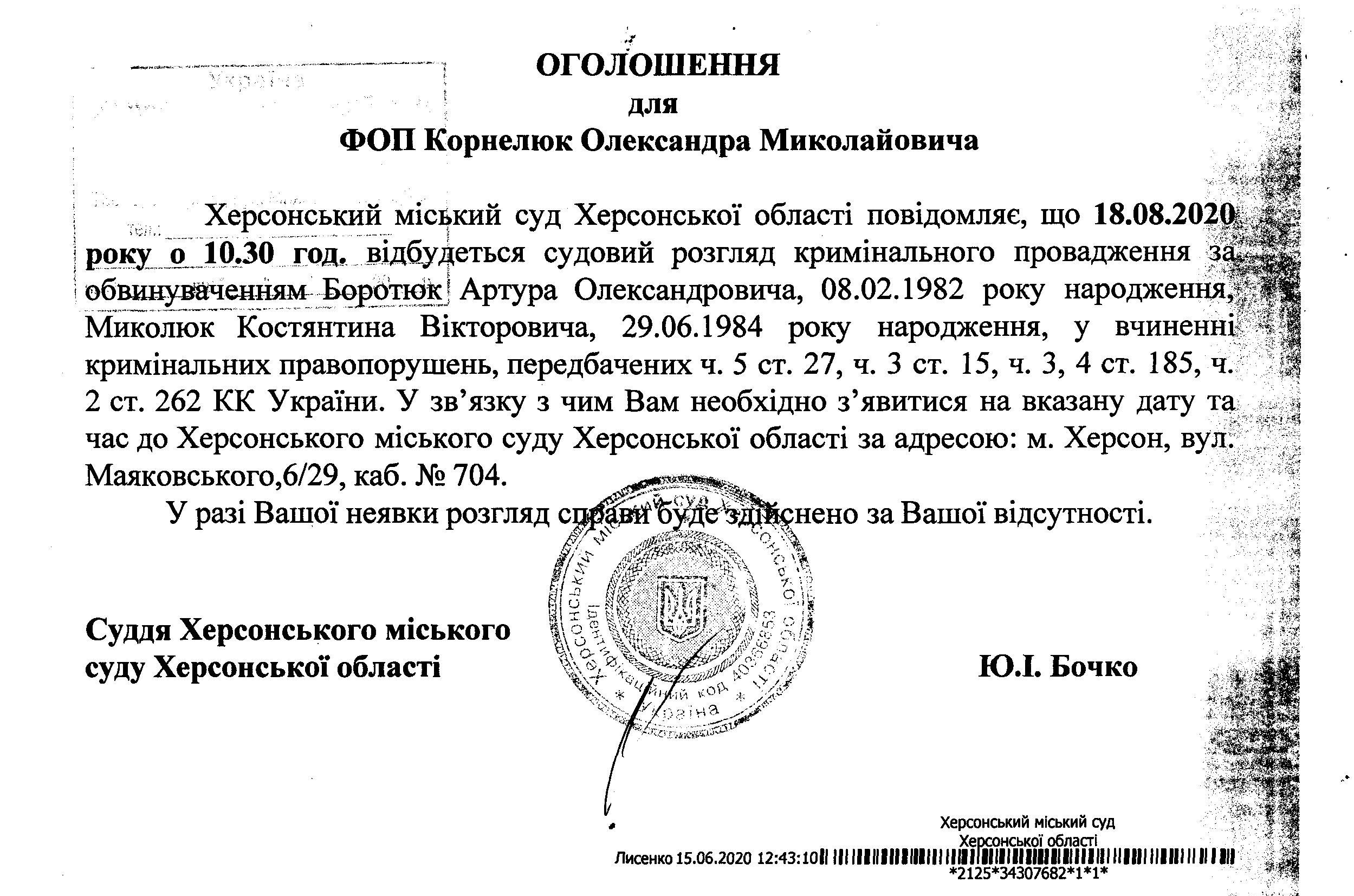 ОГОЛОШЕННЯ ПРО ВИКЛИК ДО СУДУ