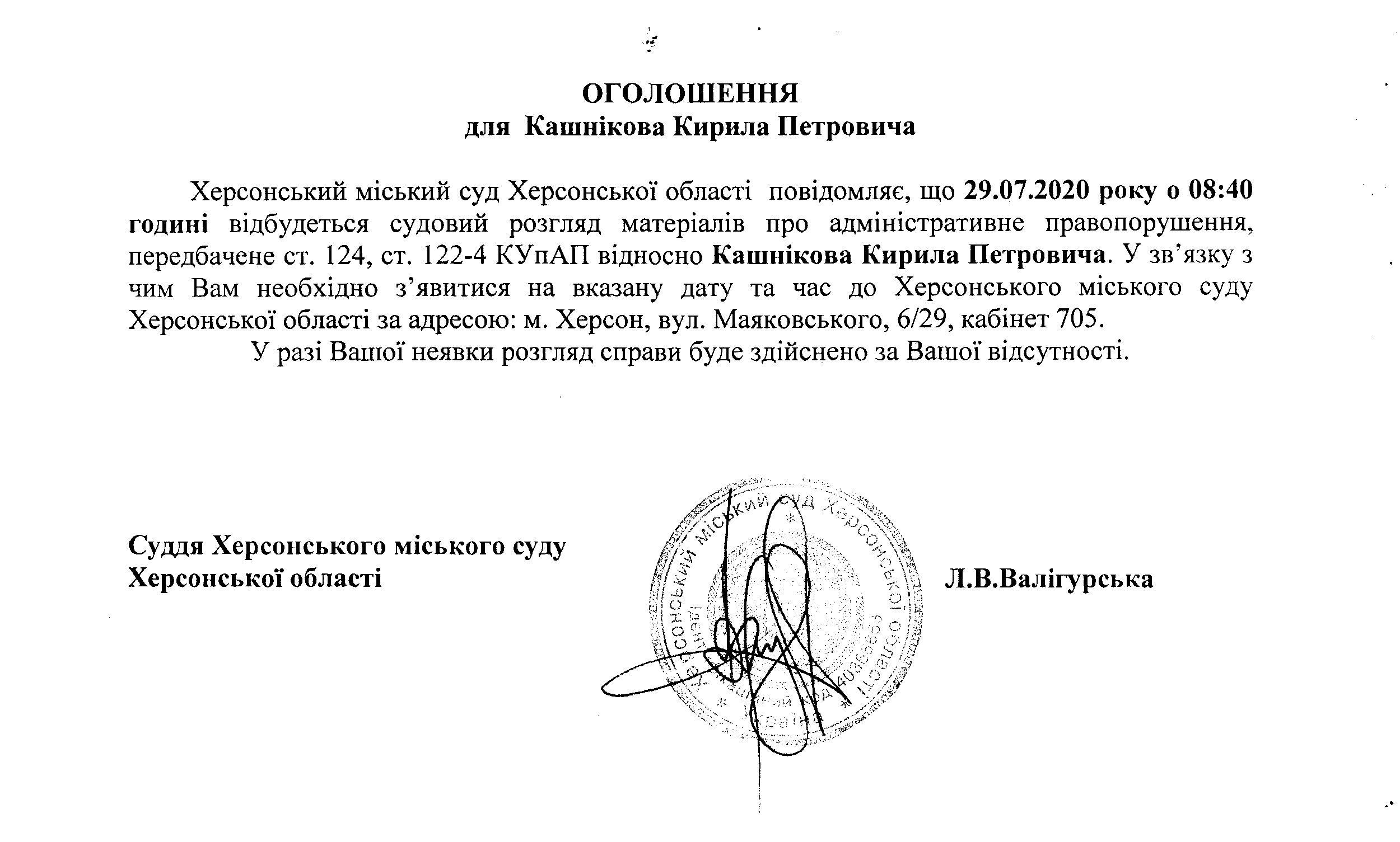 ОГОЛОШЕННЯ для Кашнікова Кирила Петровича