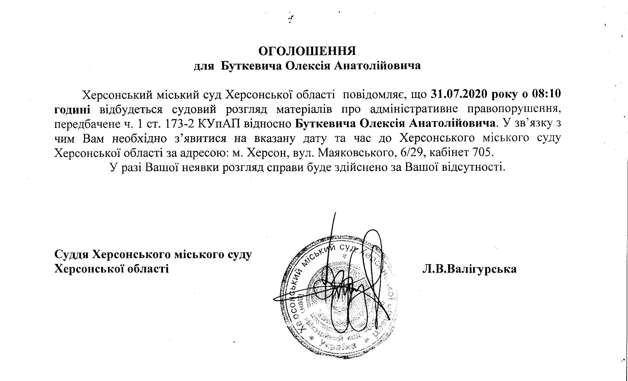ОГОЛОШЕННЯ для Буткевича Олексія Анатолійовича