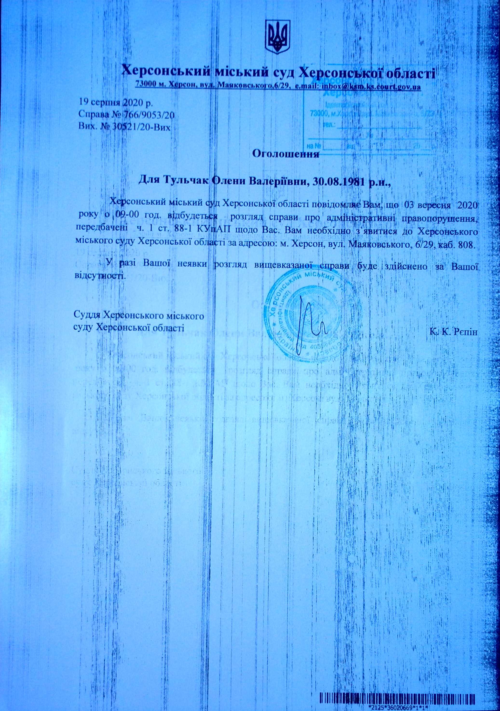 ОГОЛОШЕННЯ ПРО ВИКЛИК ДО СУДУ