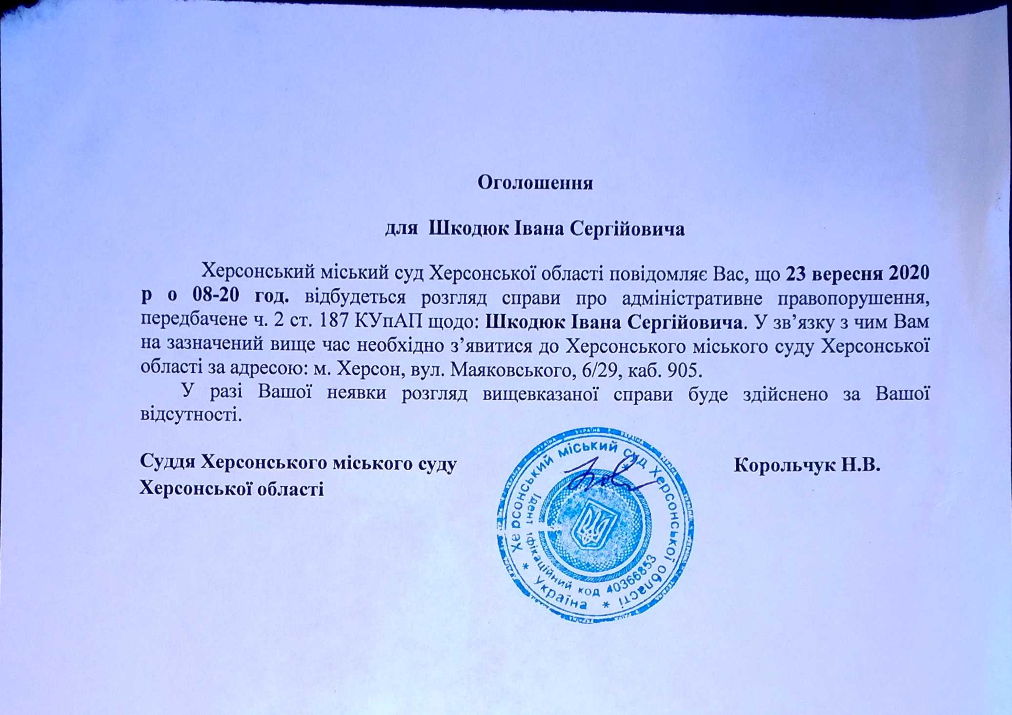 ОГОЛОШЕННЯ для Шкодюк Івана Сергійовича