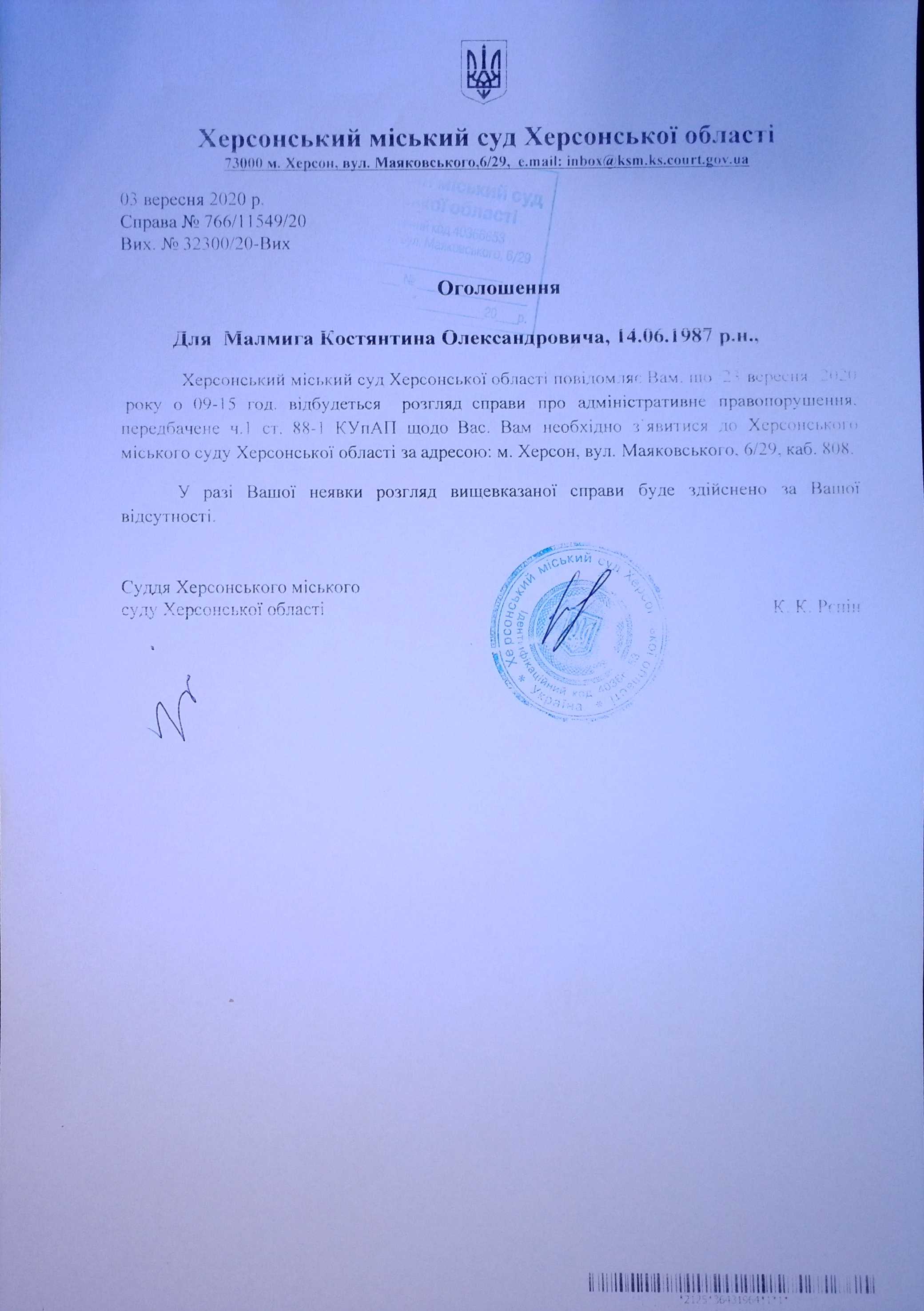 ОГОЛОШЕННЯ для Малмиги Костянтина Олександровича