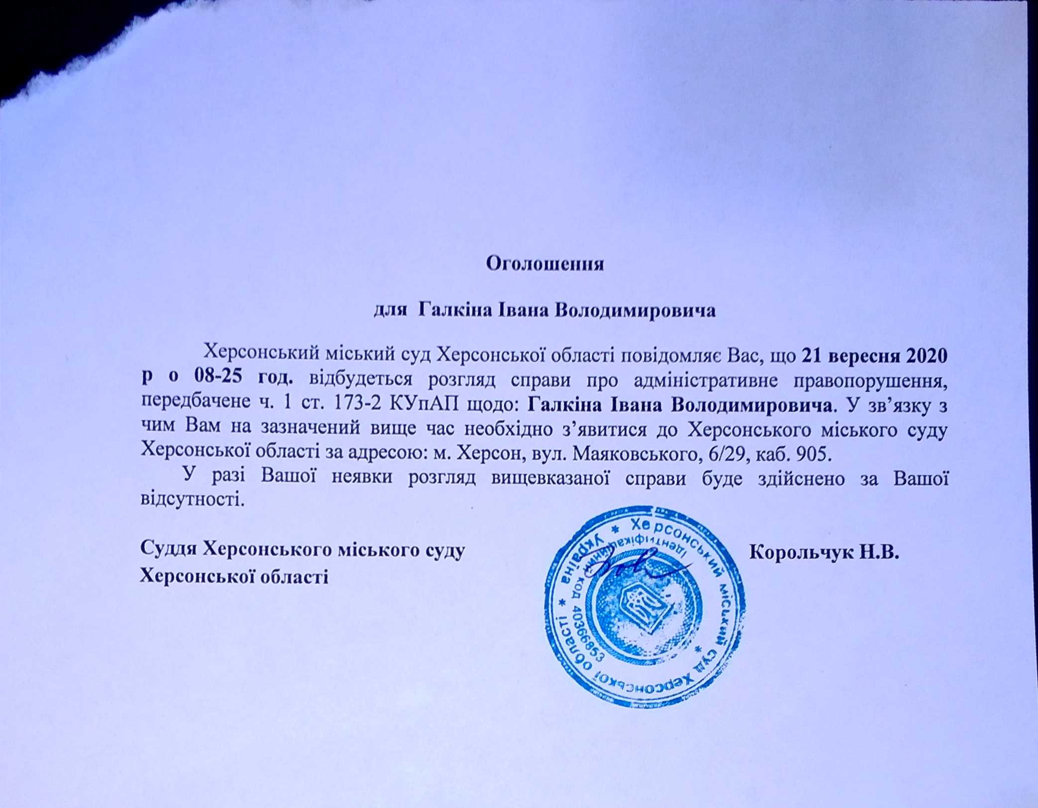 ОГОЛОШЕННЯ для Галкіна Івана Володимировича