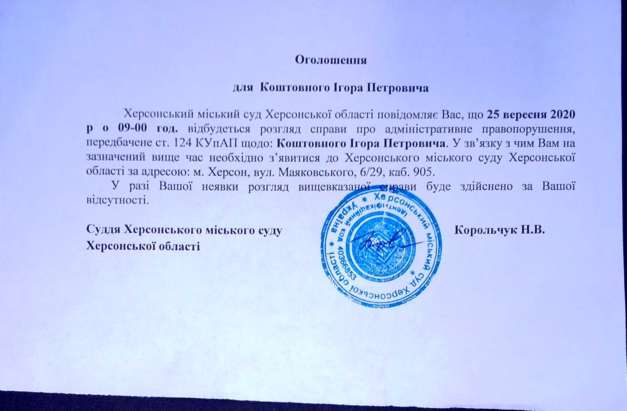 ОГОЛОШЕННЯ для Коштовного Ігора Петровича
