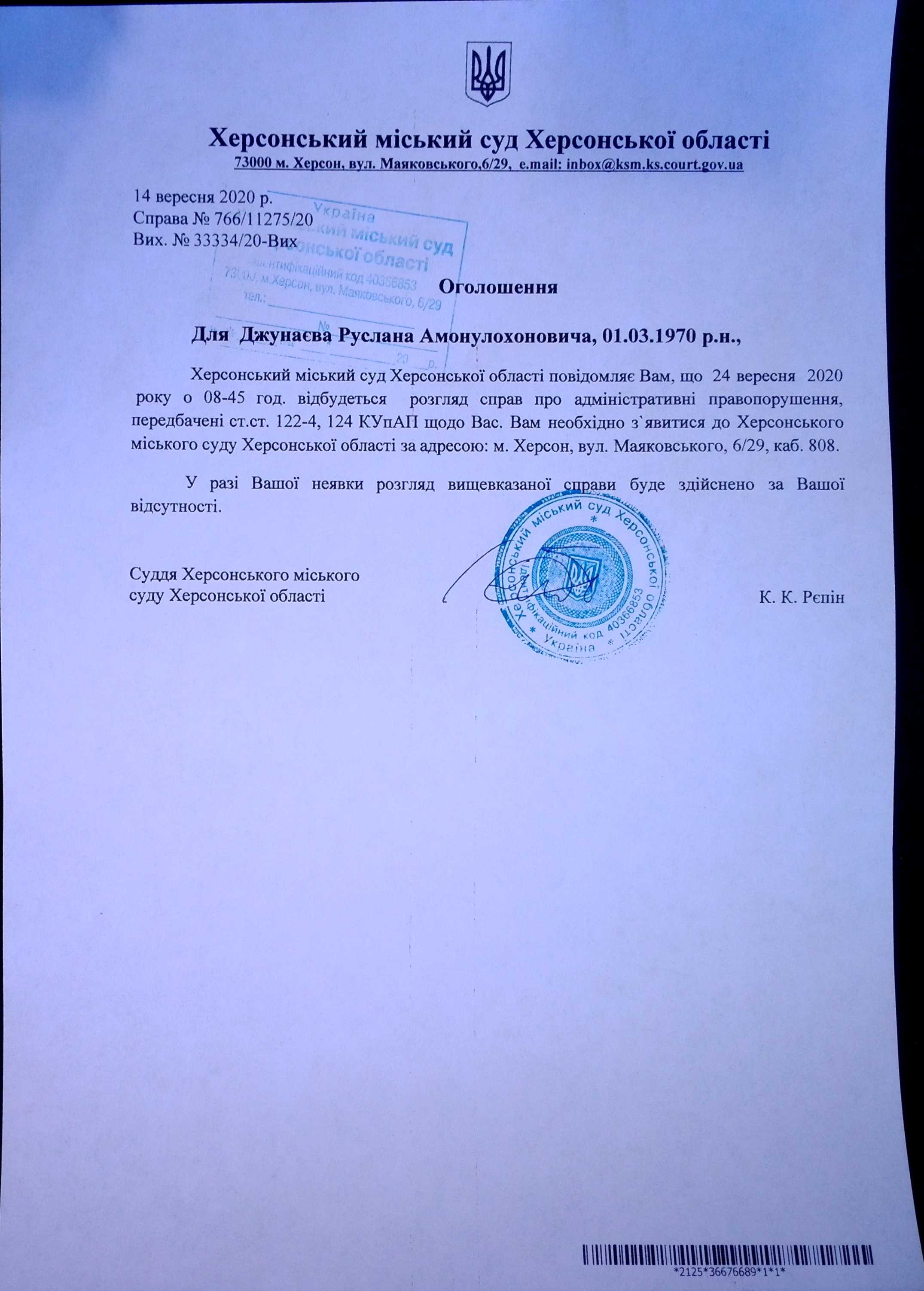 ОГОЛОШЕННЯ для Джунаєва Руслана Амонулохоновича