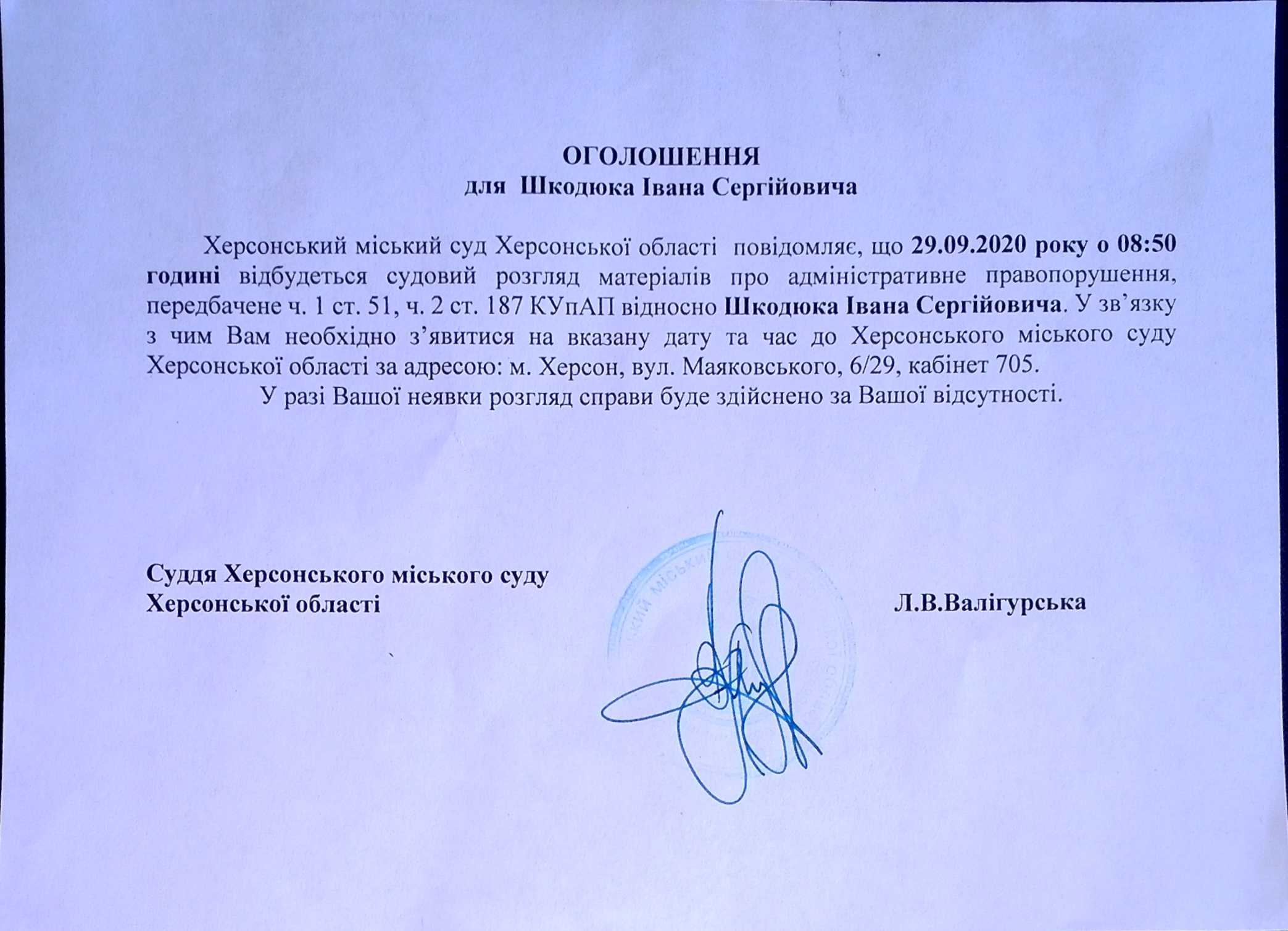ОГОЛОШЕННЯ ПРО ВИКЛИК ДО СУДУ