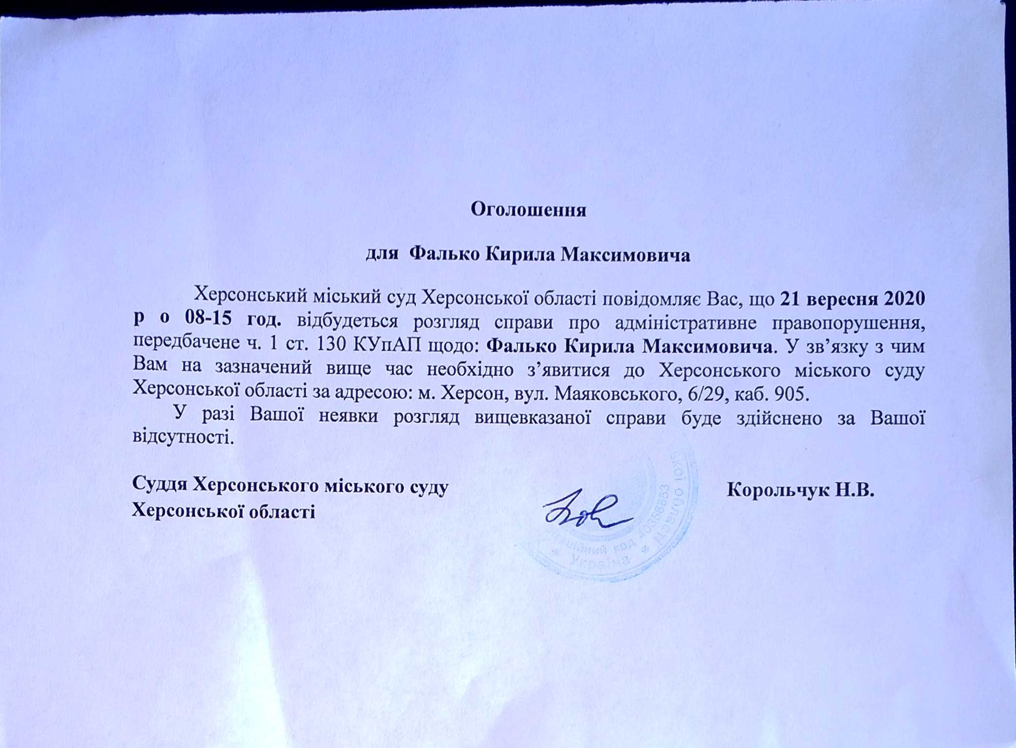 ОГОЛОШЕННЯ для Фалько Кирила Максимовича