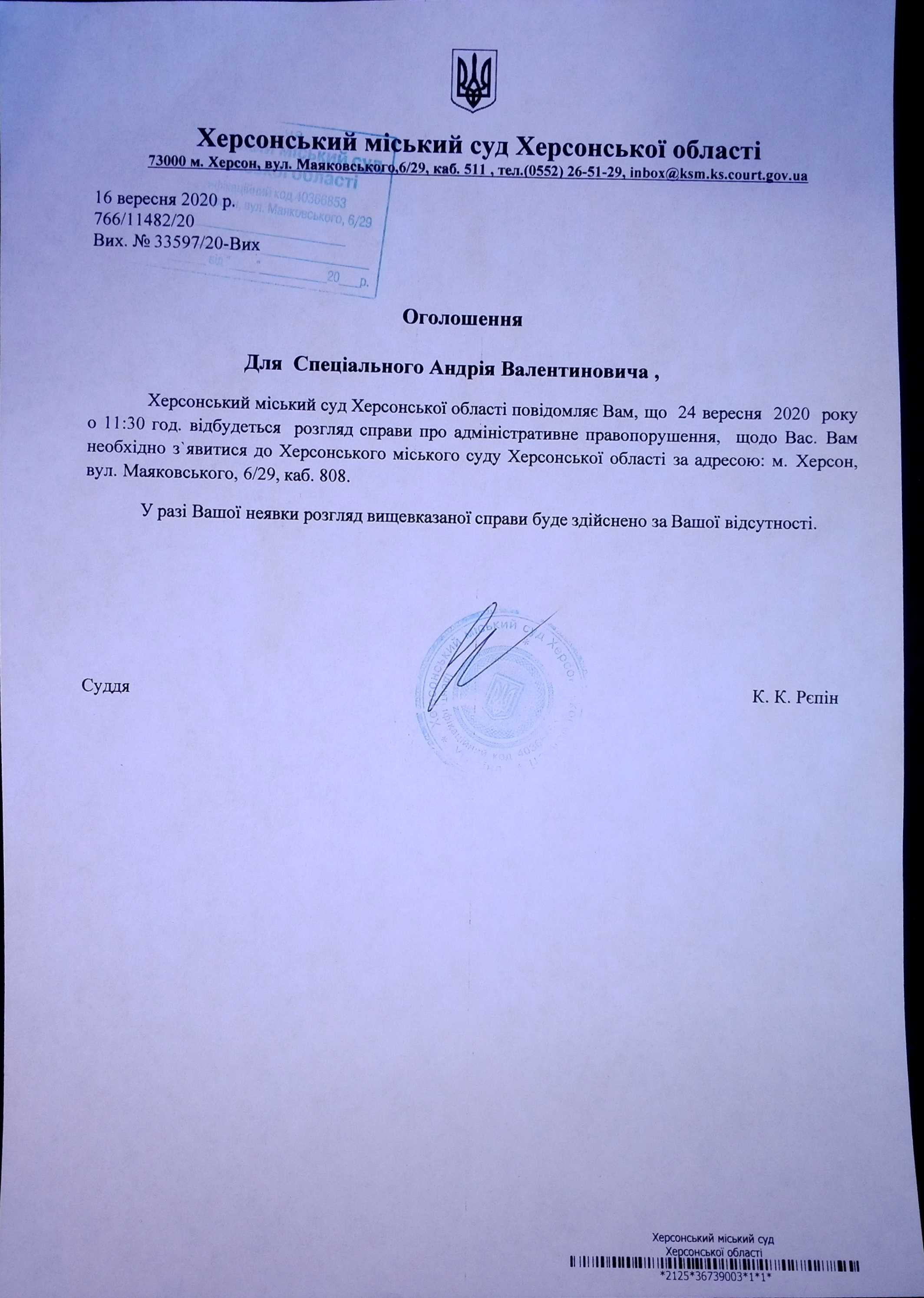 ОГОЛОШЕННЯ для Спеціального Андрія Валентиновича