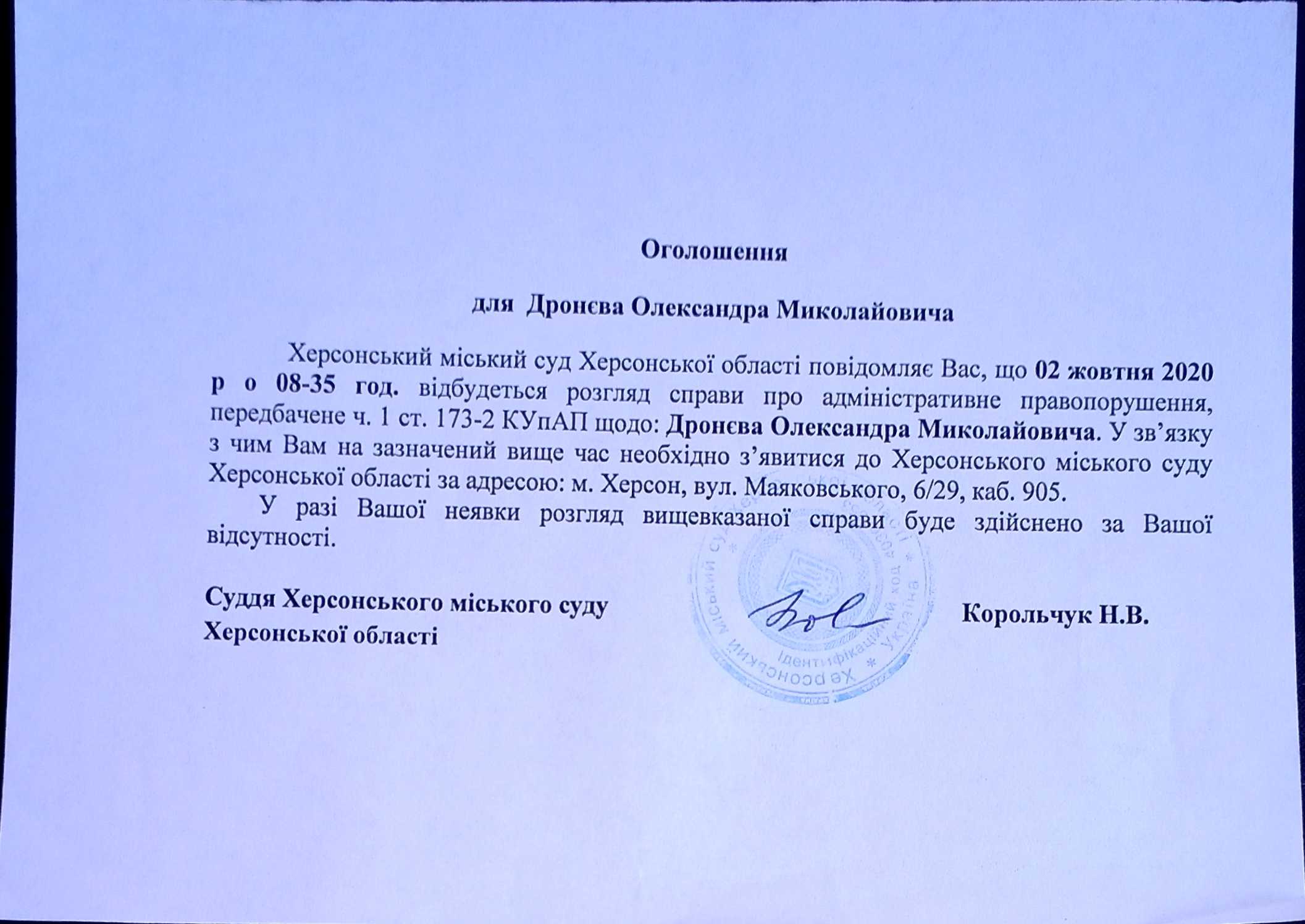 ОГОЛОШЕННЯ для Дронєва Олександра Миколайовича