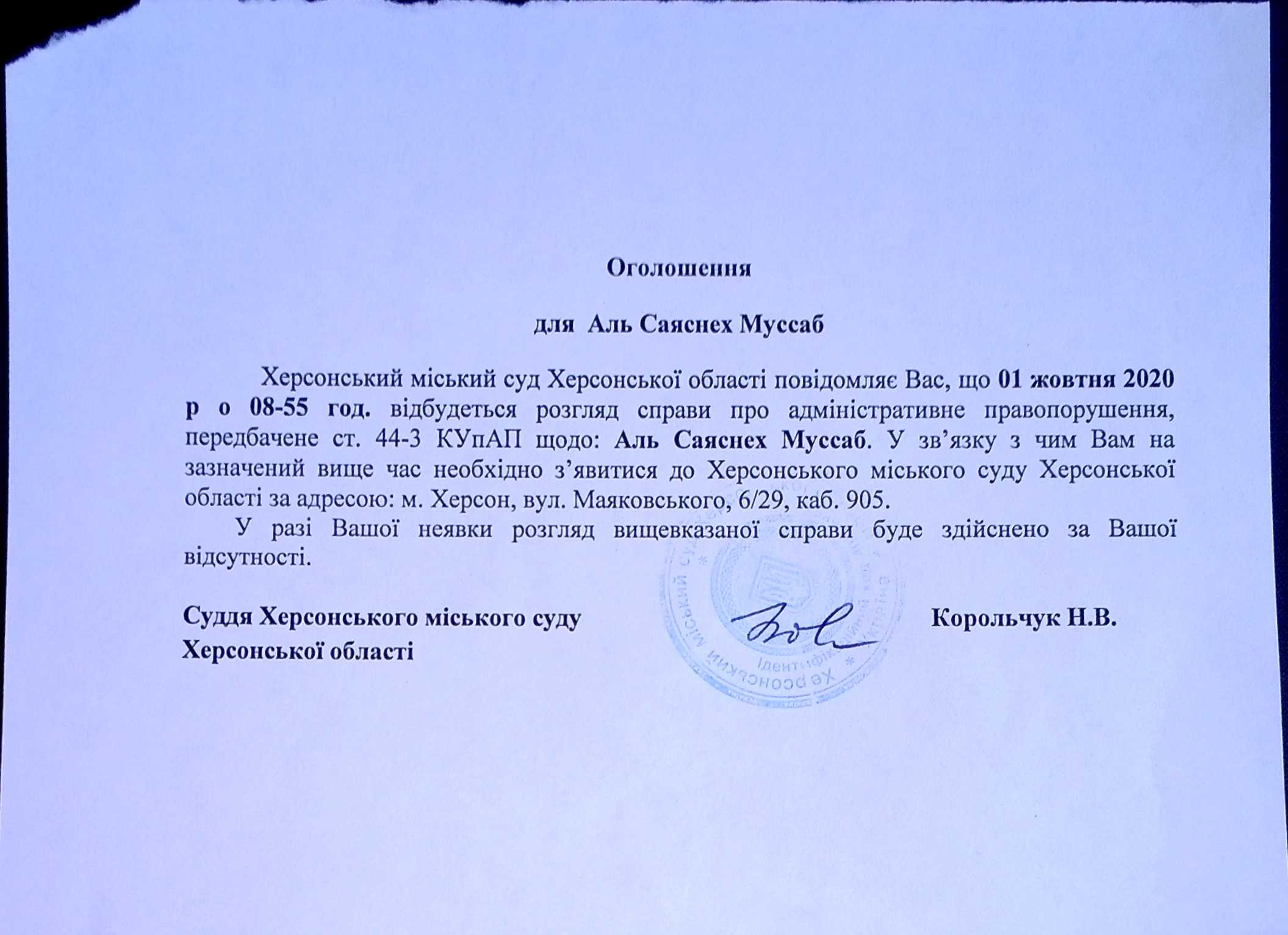 ОГОЛОШЕННЯ для Аль Саяснех Муссаб