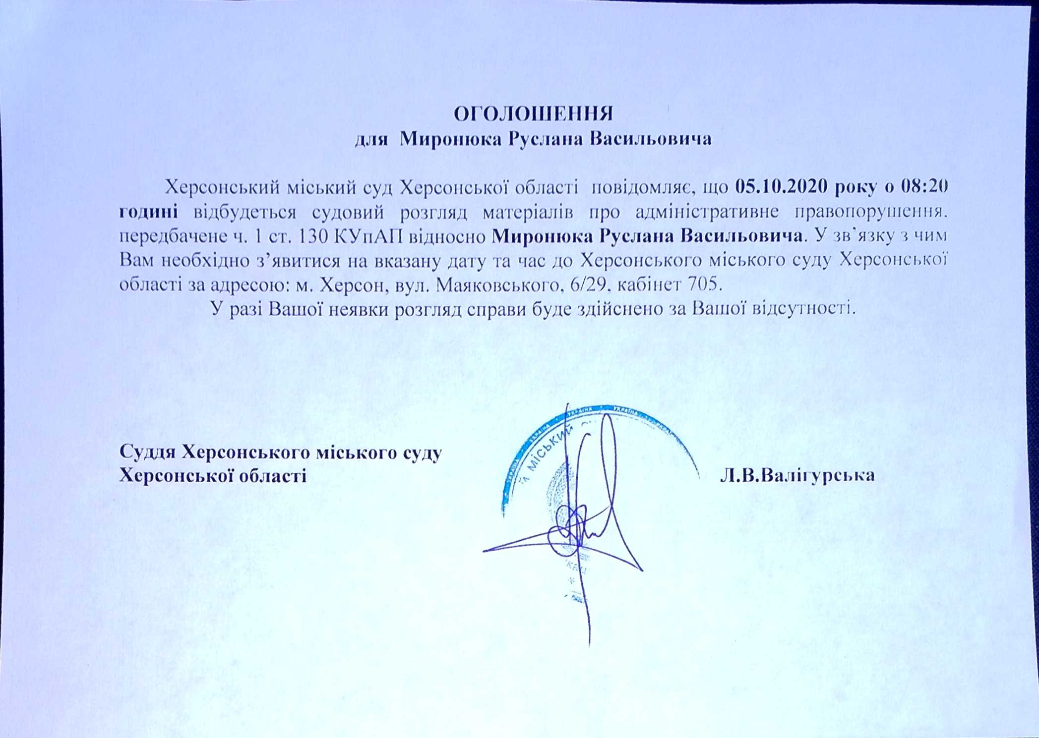 ОГОЛОШЕННЯ для Миронюка Руслана Васильовича