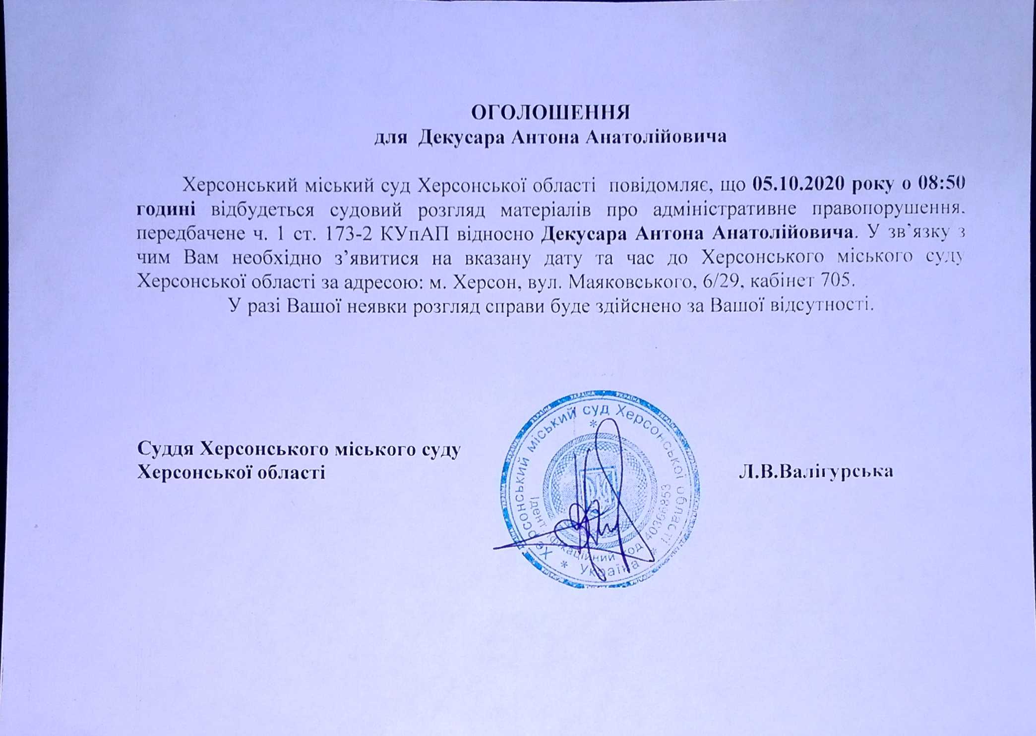 ОГОЛОШЕННЯ для Декусара Антона Анатолійовича