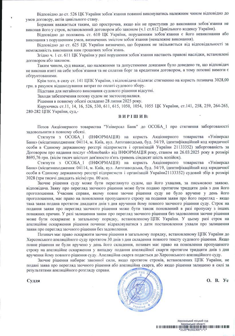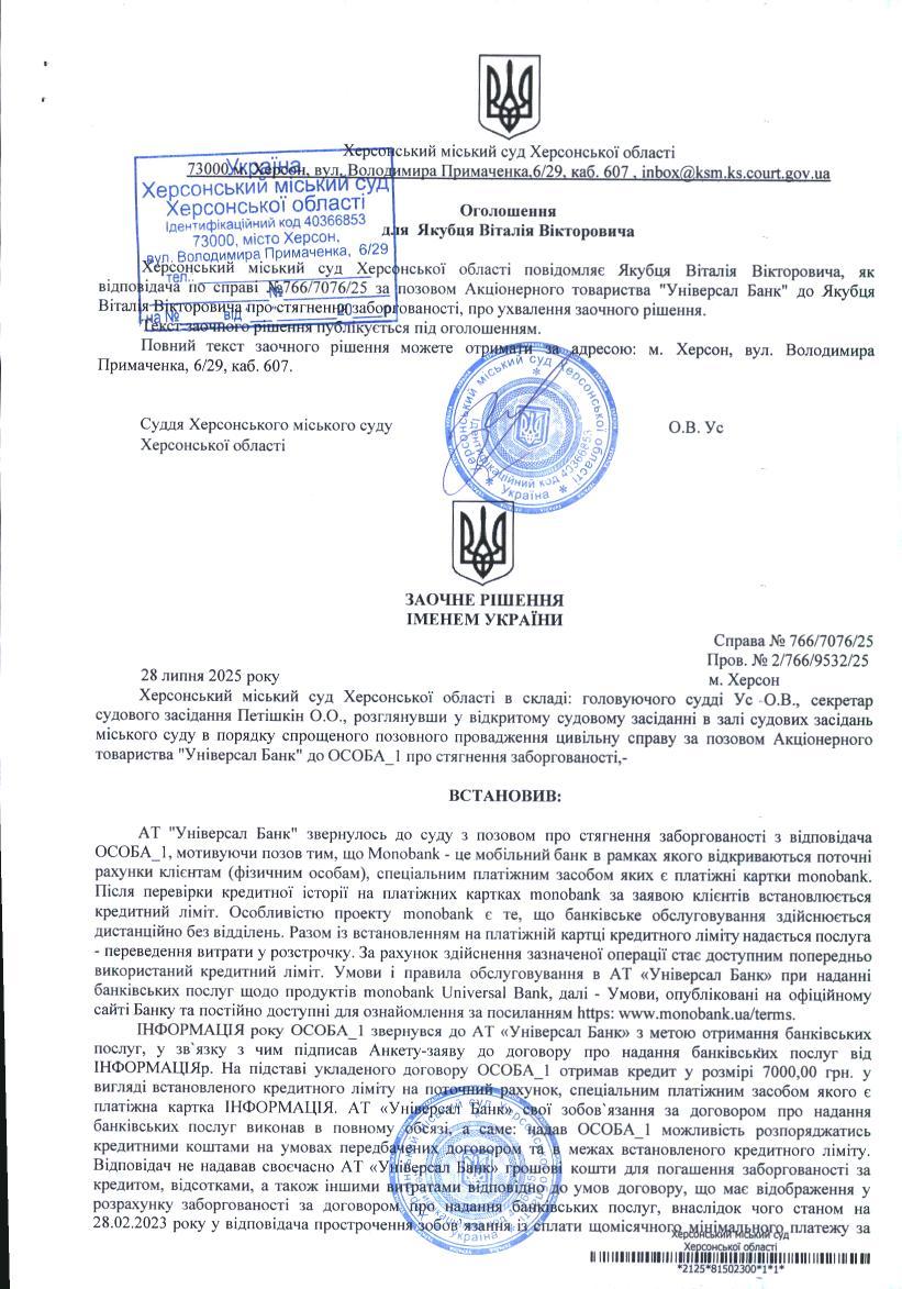 Оголошення для Якубця Віталія Вікторовича про ухвалення заочного рішення