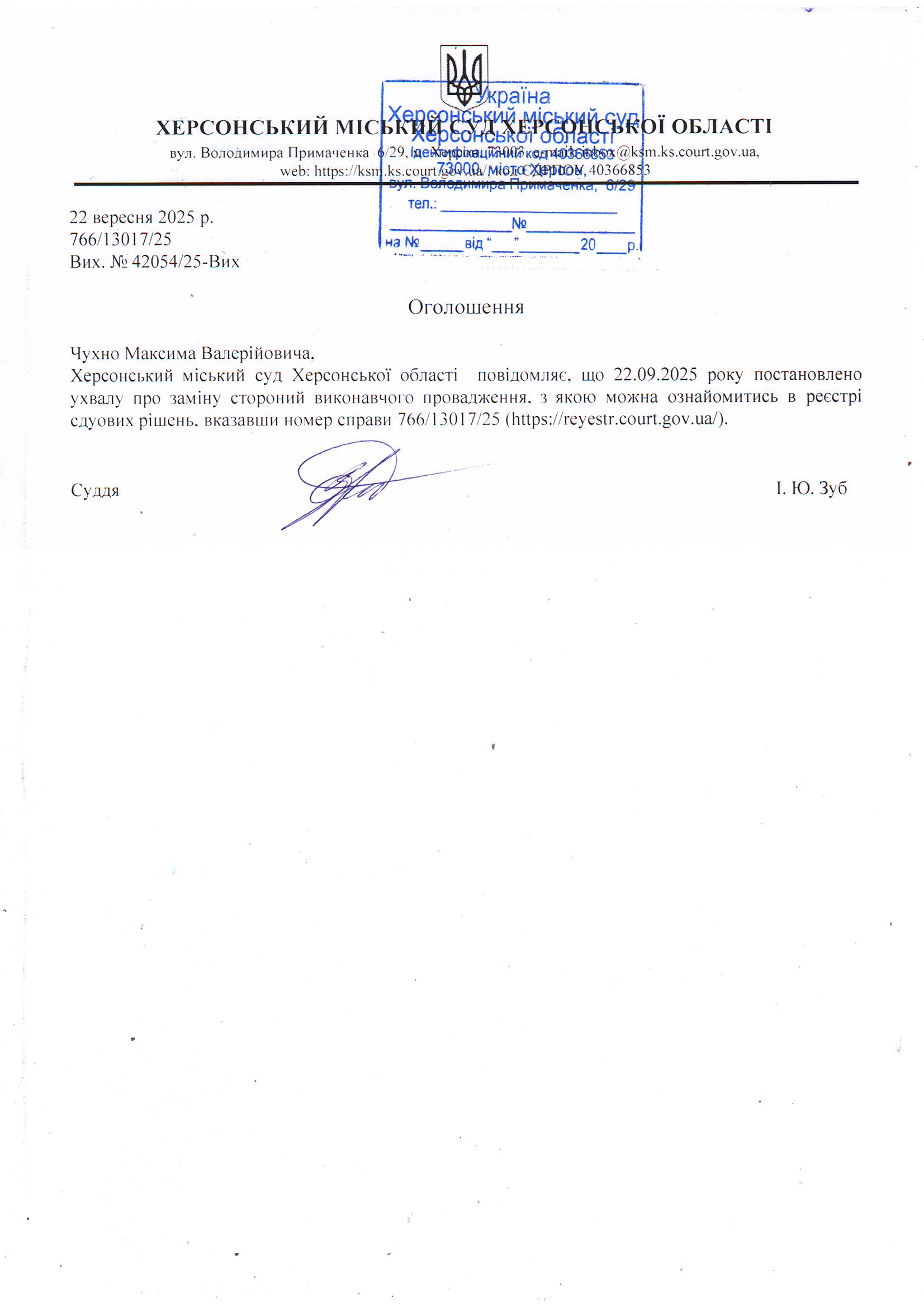 Оголошення для Чухно Максима Валерійовича про постановлення ухвали
