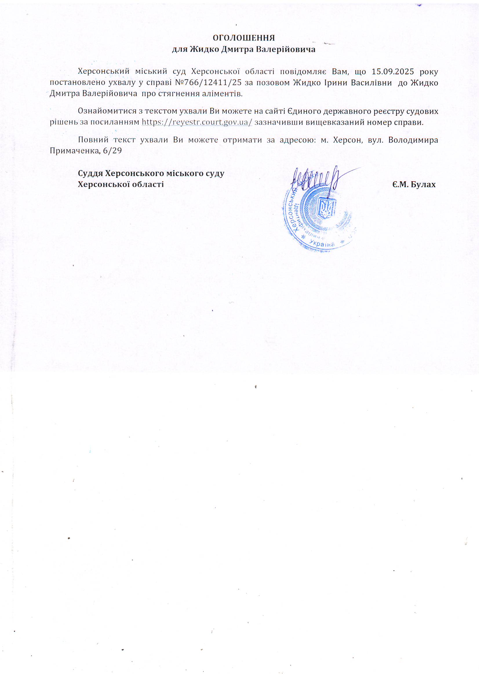 Оголошення для Жидка Дмитра Валерійовича про постановлення ухвали