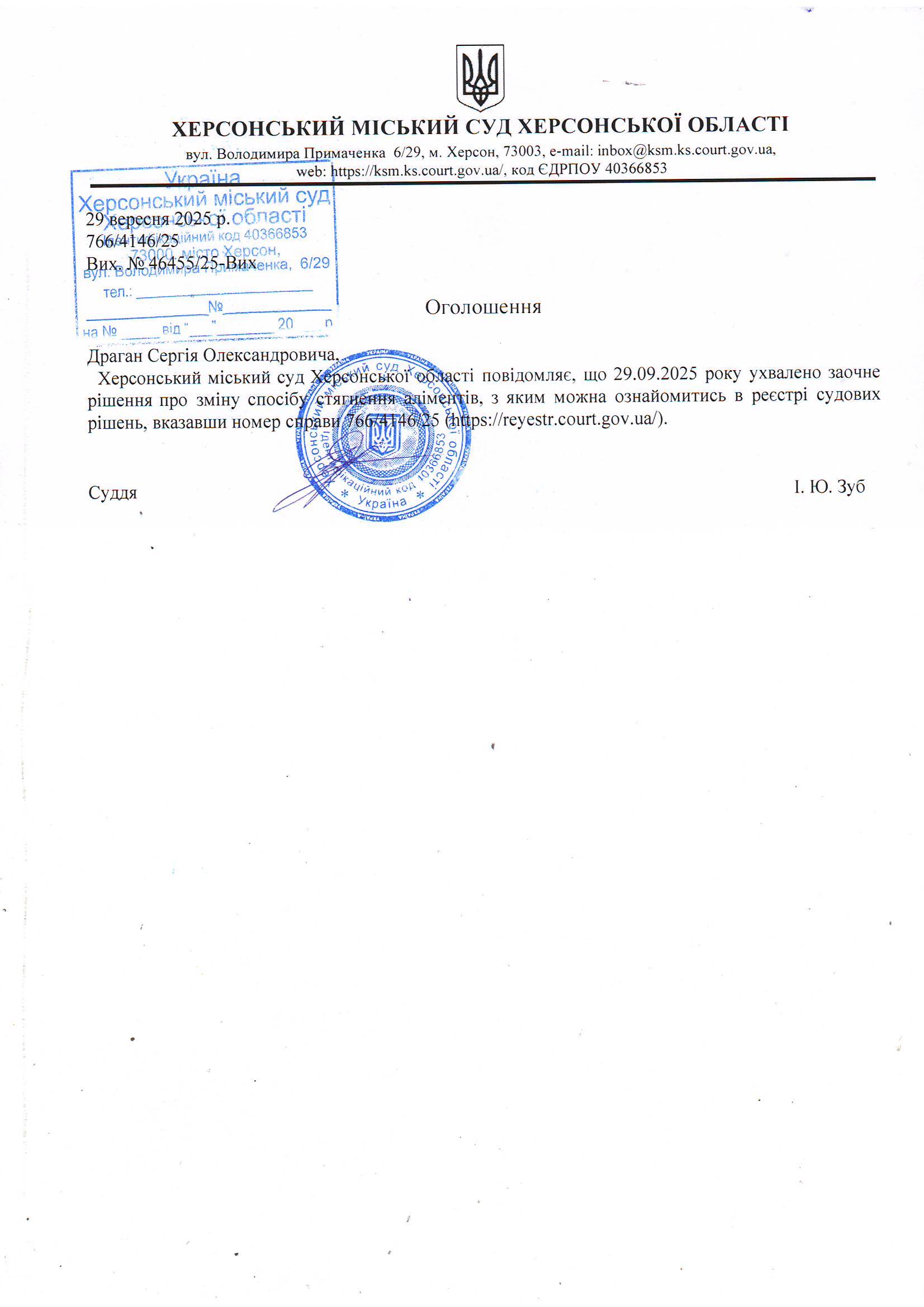 Оголошення для Драгана Сергія Олександровича про ухвалення заочного рішення