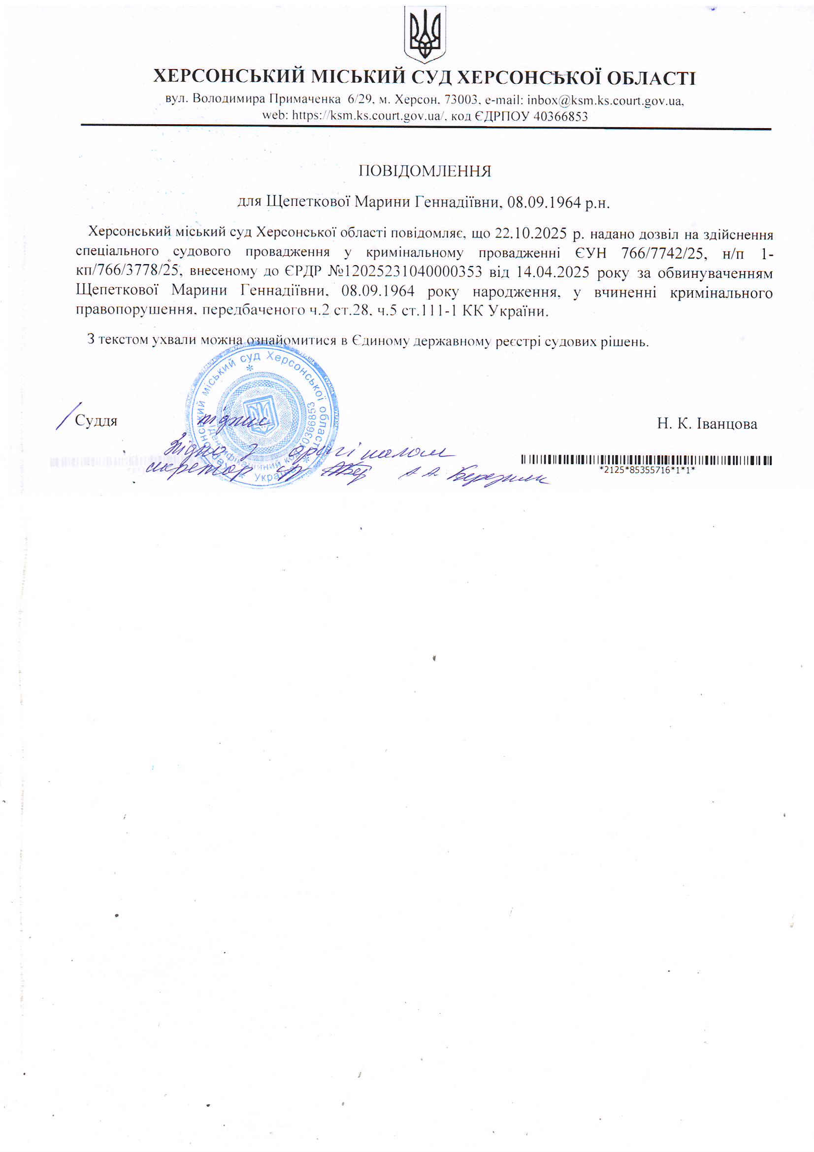 Херсонський міський суд Херсонської області