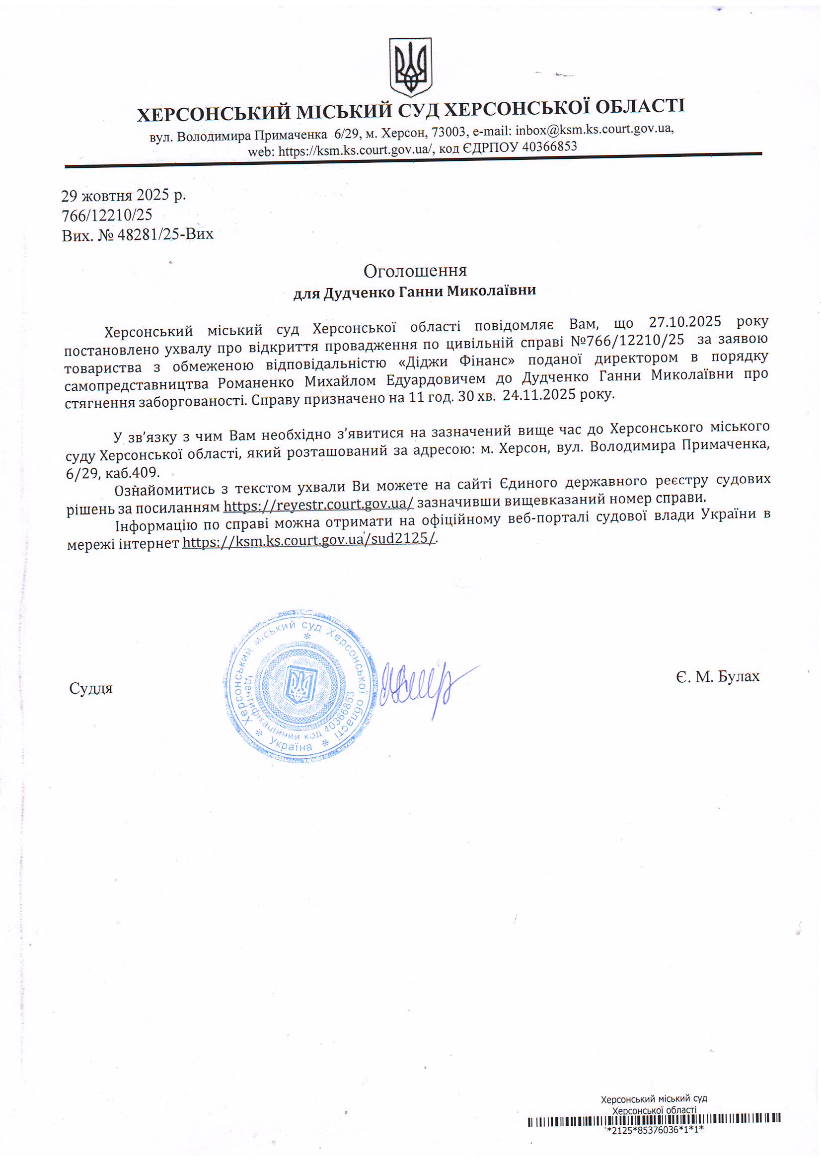 ОГОЛОШЕННЯ ПРО ВИКЛИК ДО СУДУ