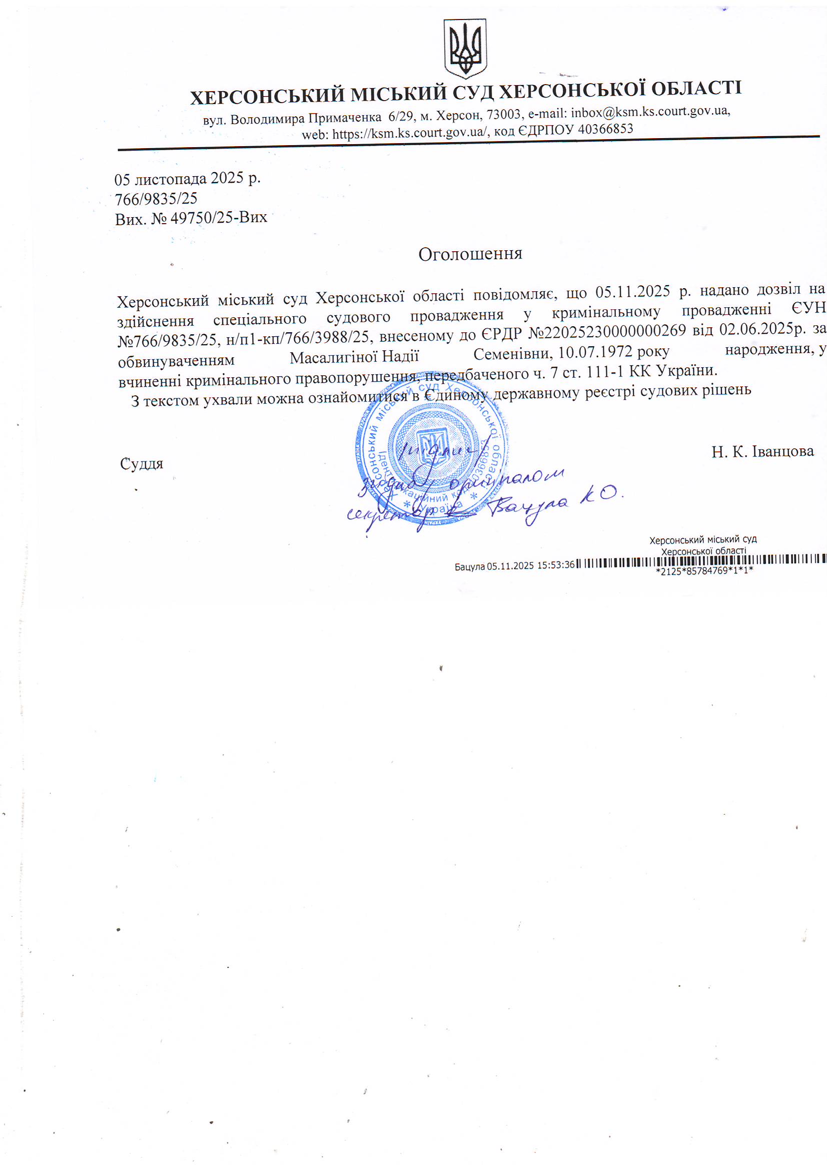 Оголошення про виклик особи в суд та повідомлення про судове рішення