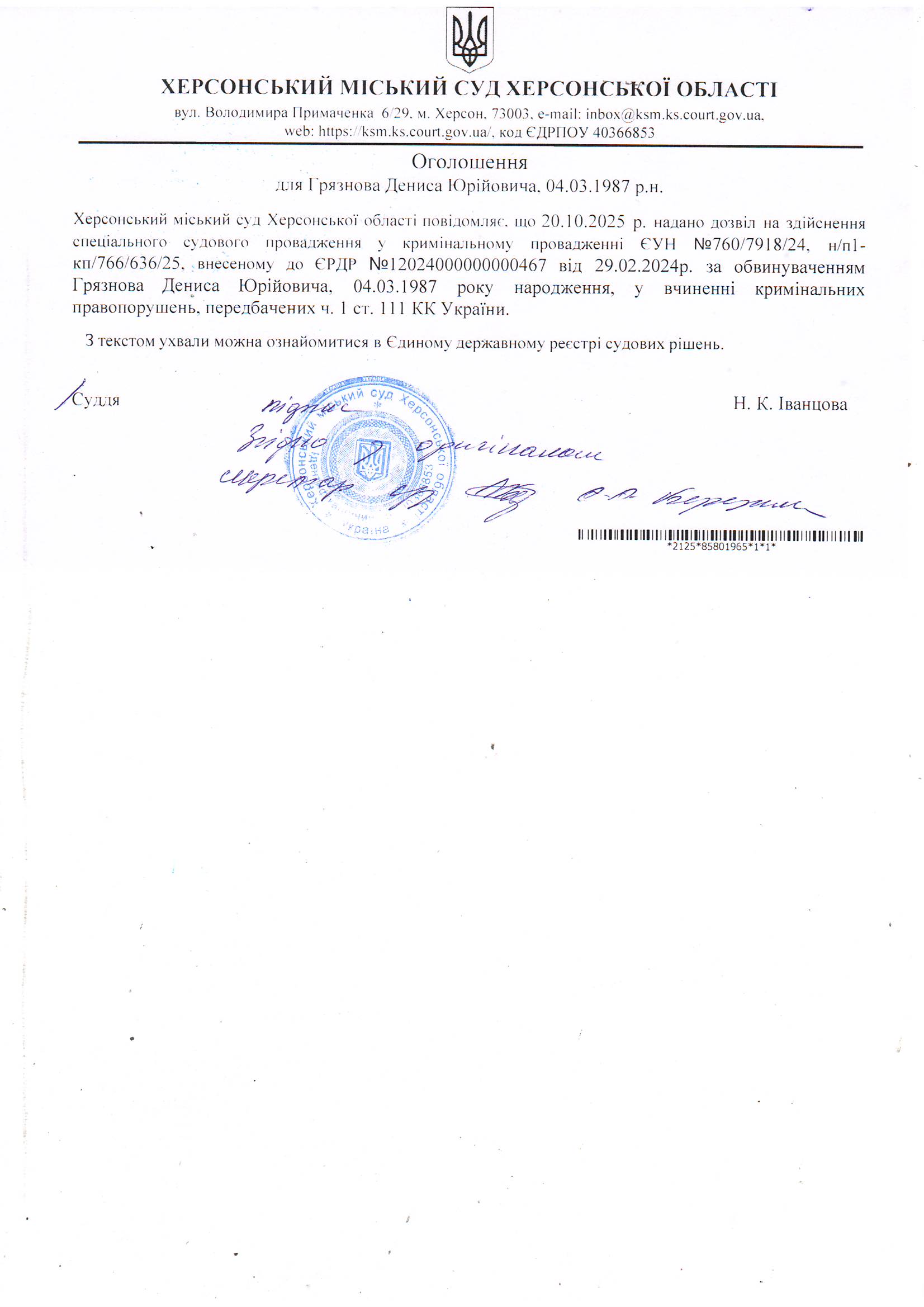 Херсонський міський суд Херсонської області