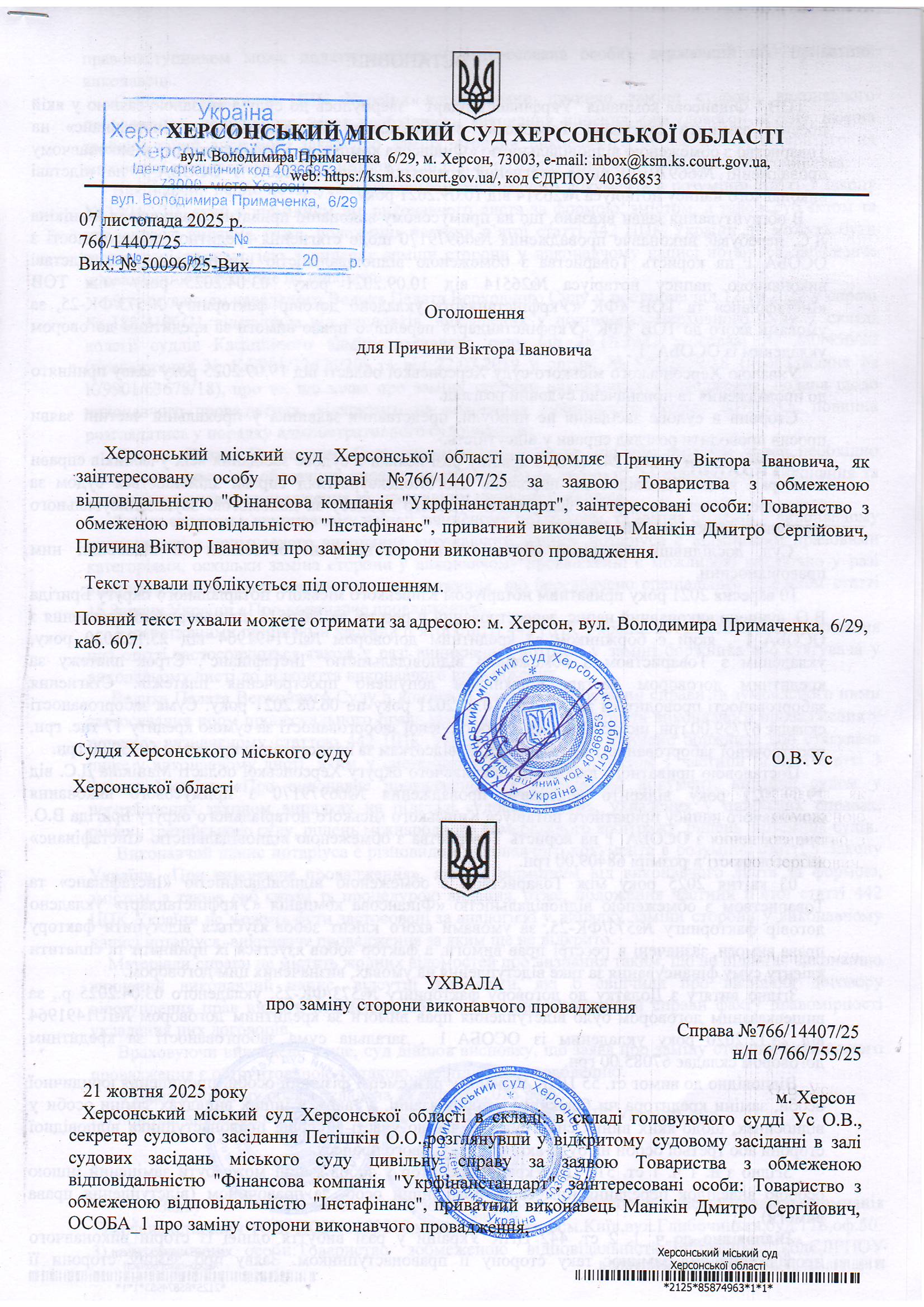 ПОВІДОМЛЕННЯ ПРО РОЗГЛЯД СПРАВИ БЕЗ ВИКЛИКУ СТОРІН