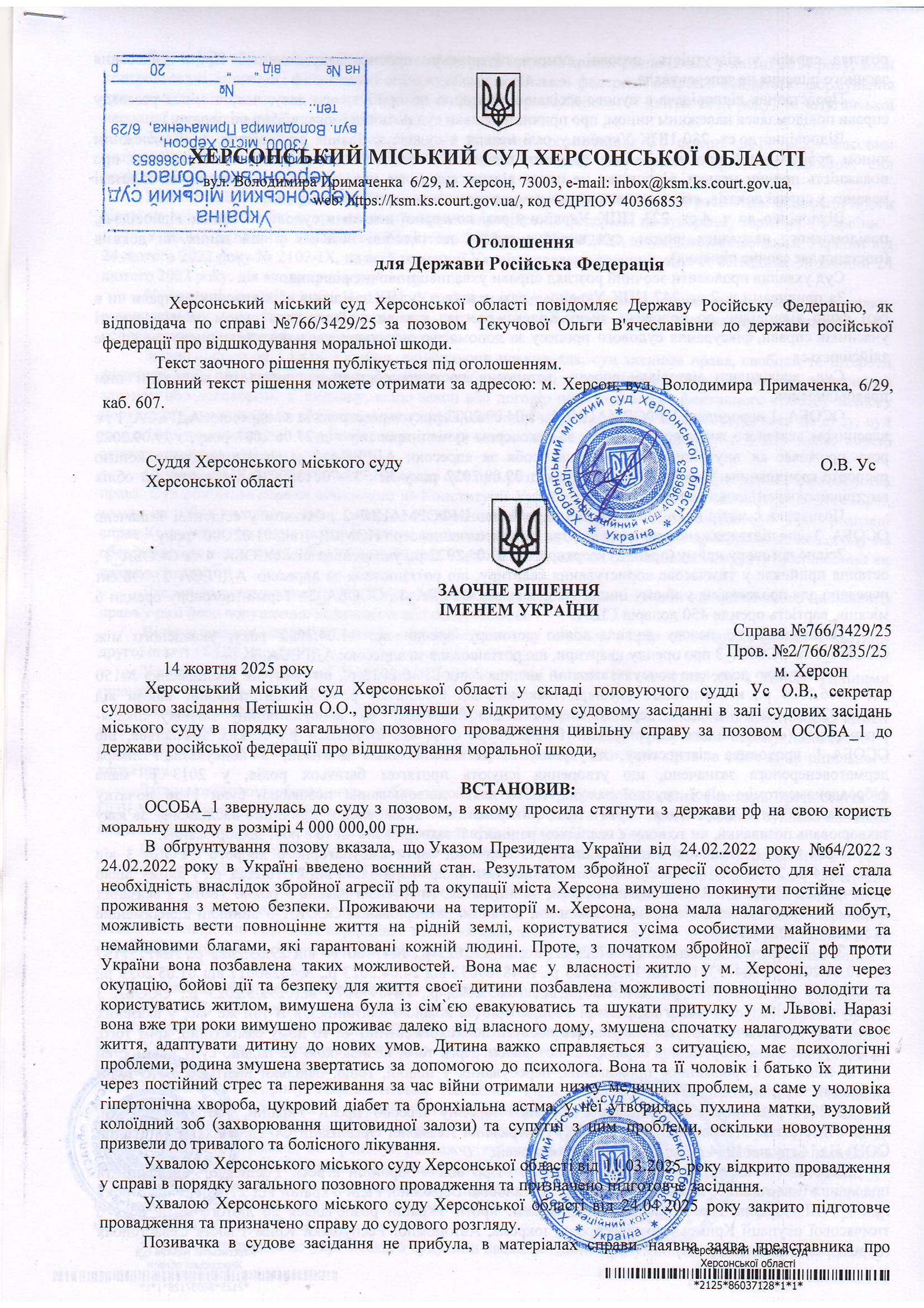 ОГОЛОШЕННЯ, УХВАЛИ ТА ЗАОЧНІ РІШЕННЯ