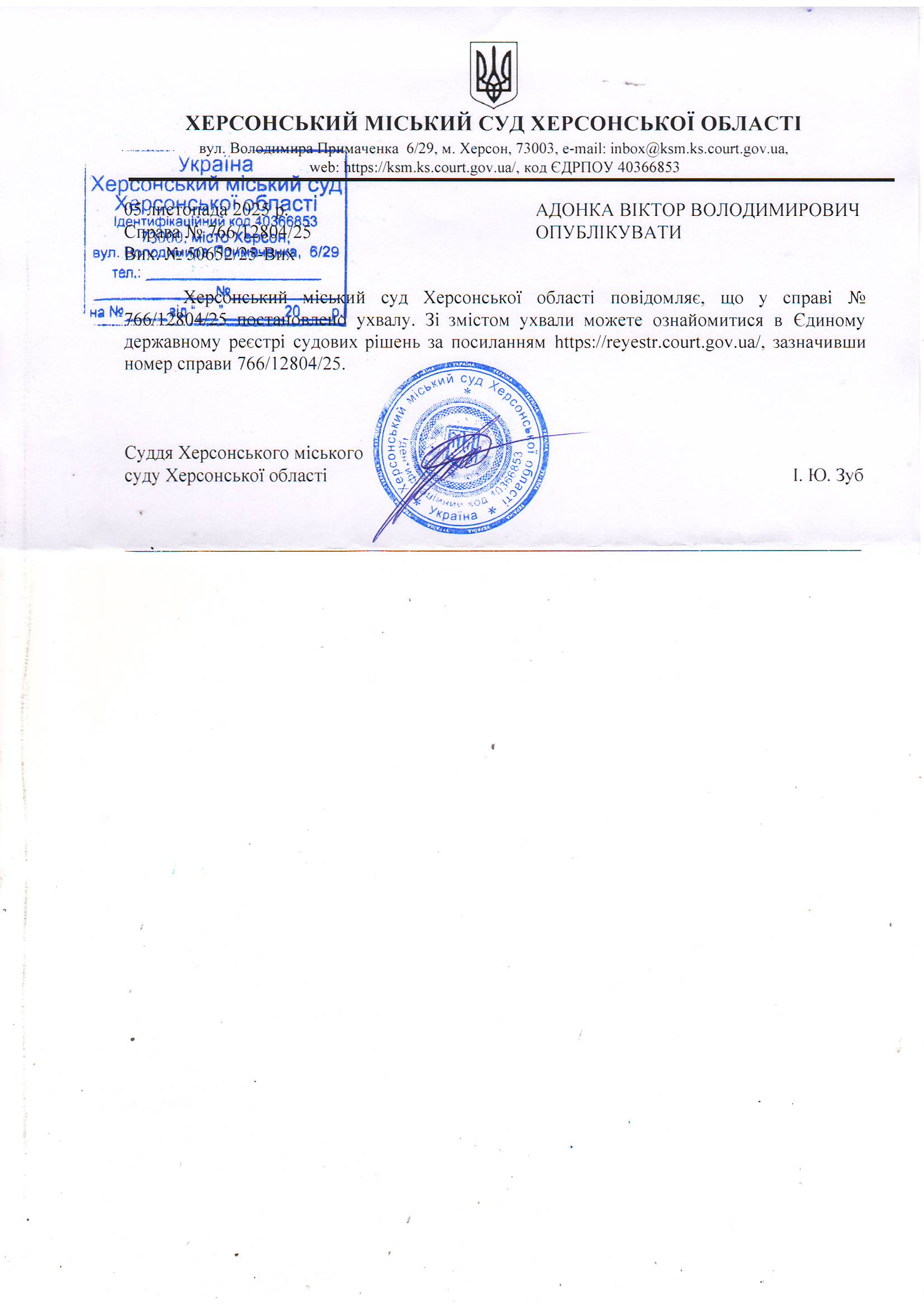 Оголошення для Адонки Віктора Володимировича про постановлення ухвали