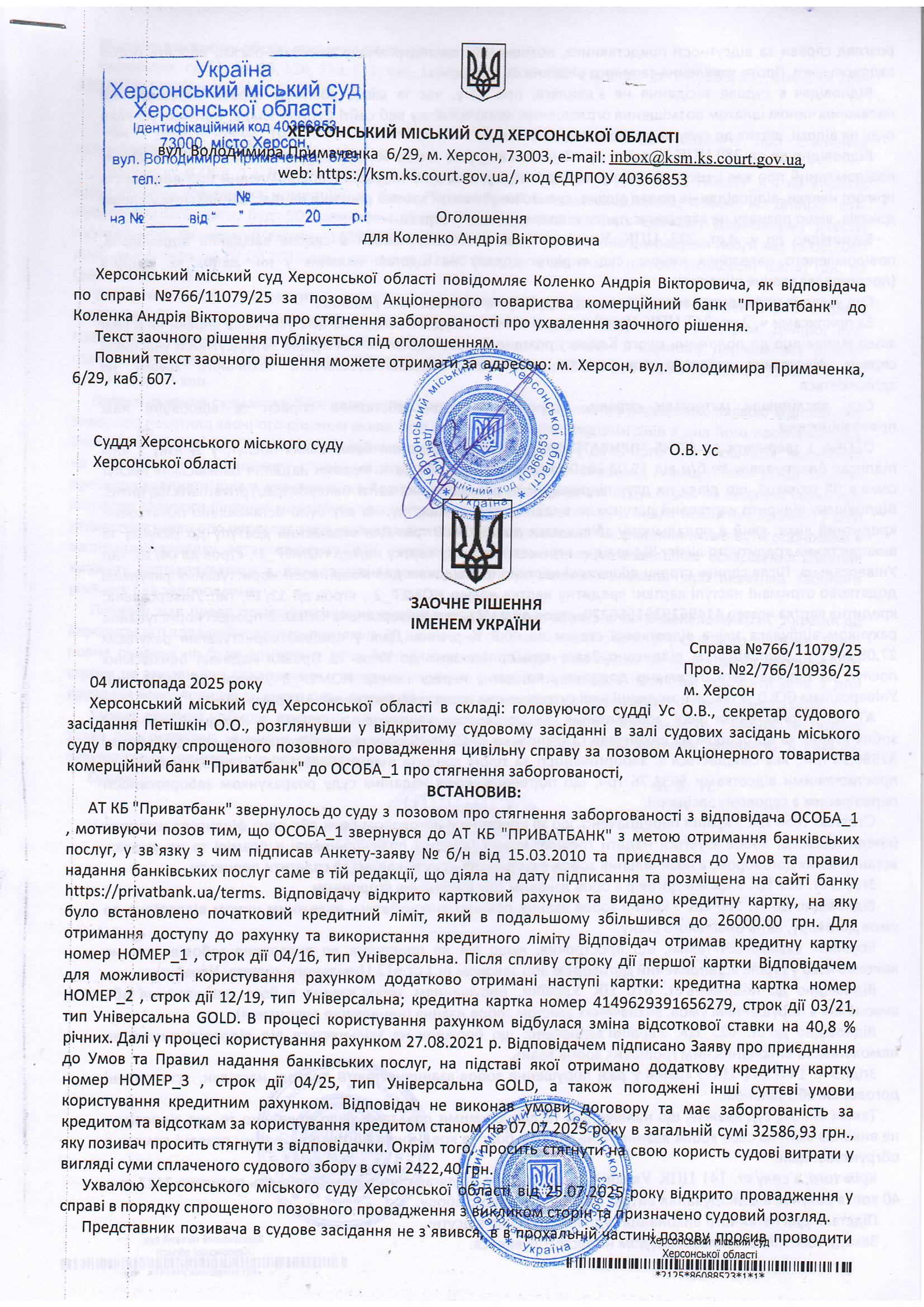 ОГОЛОШЕННЯ, УХВАЛИ ТА ЗАОЧНІ РІШЕННЯ