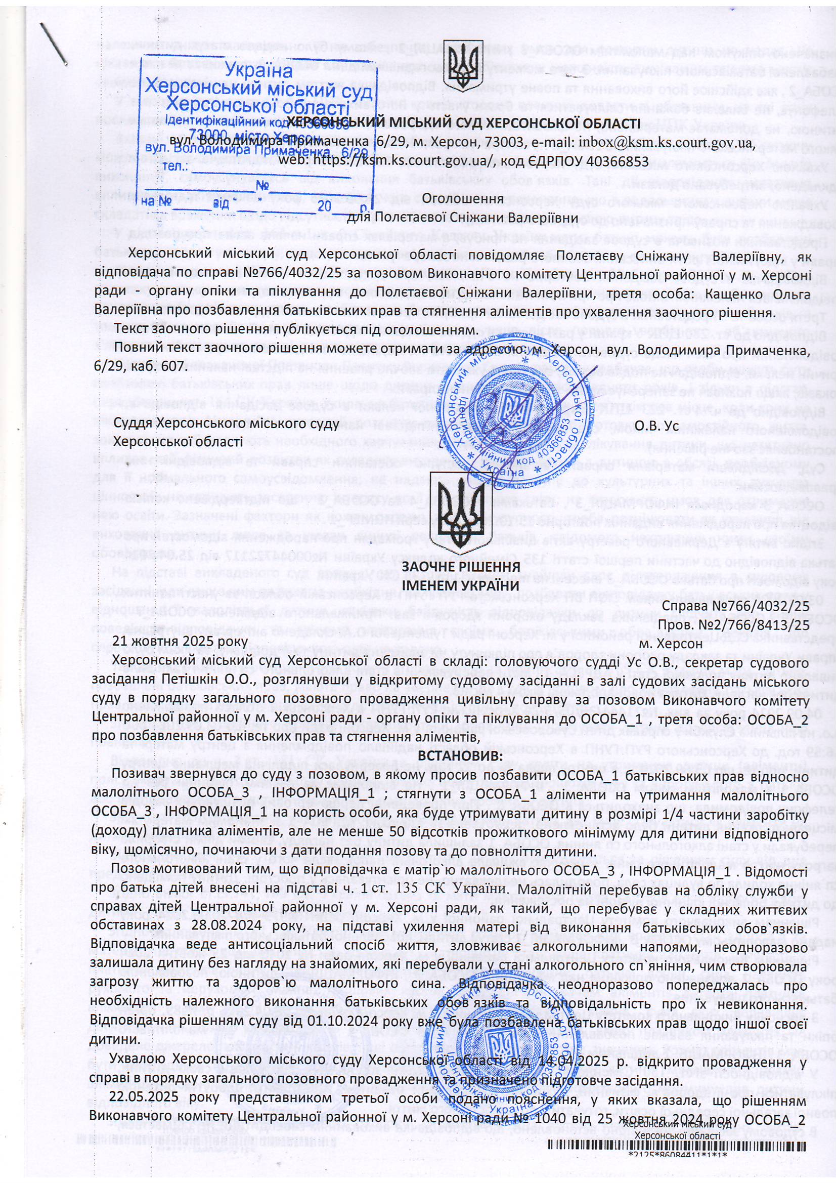 ОГОЛОШЕННЯ, УХВАЛИ ТА ЗАОЧНІ РІШЕННЯ