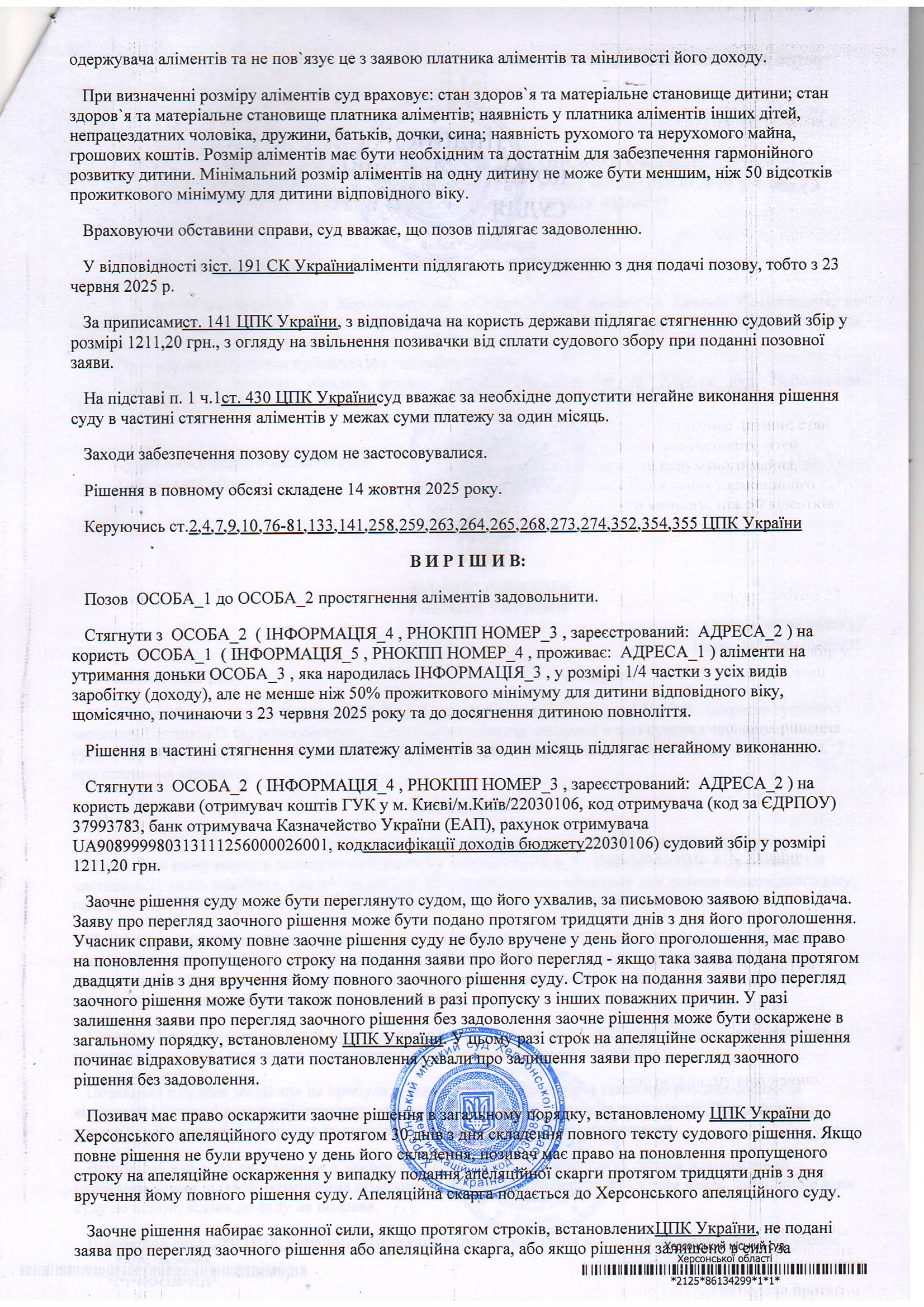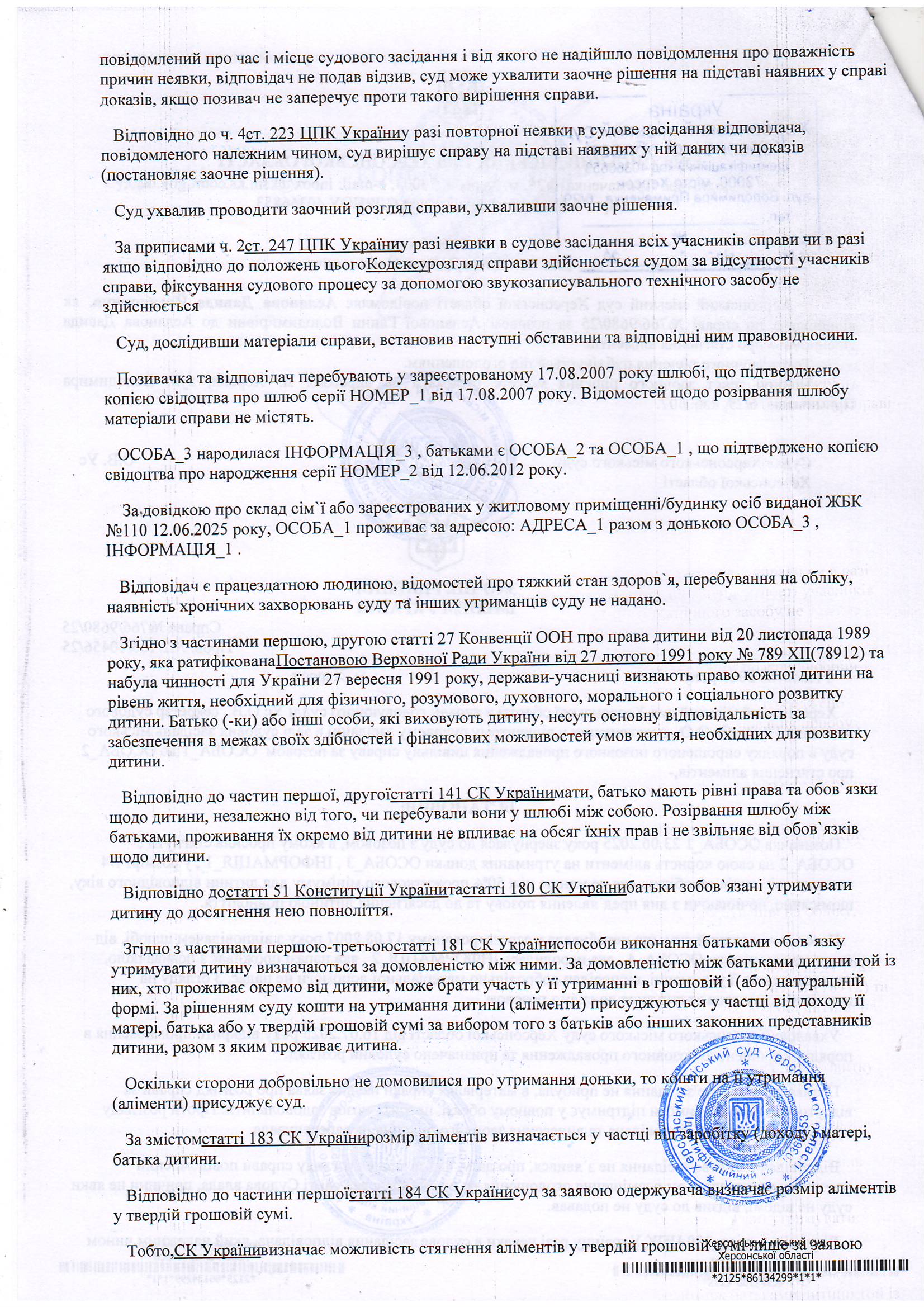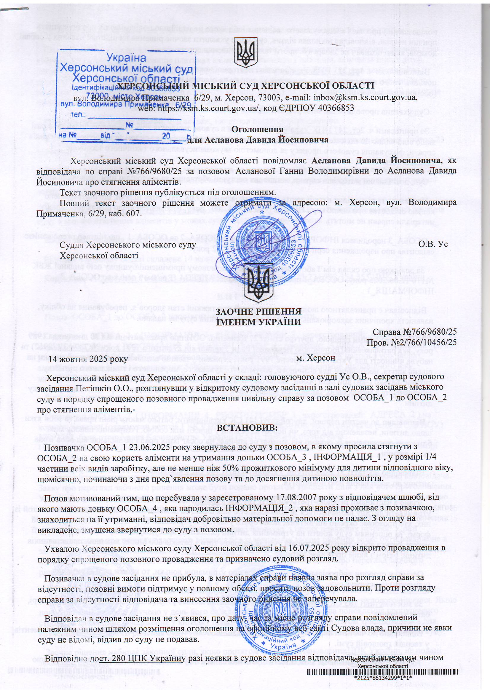 ОГОЛОШЕННЯ, УХВАЛИ ТА ЗАОЧНІ РІШЕННЯ