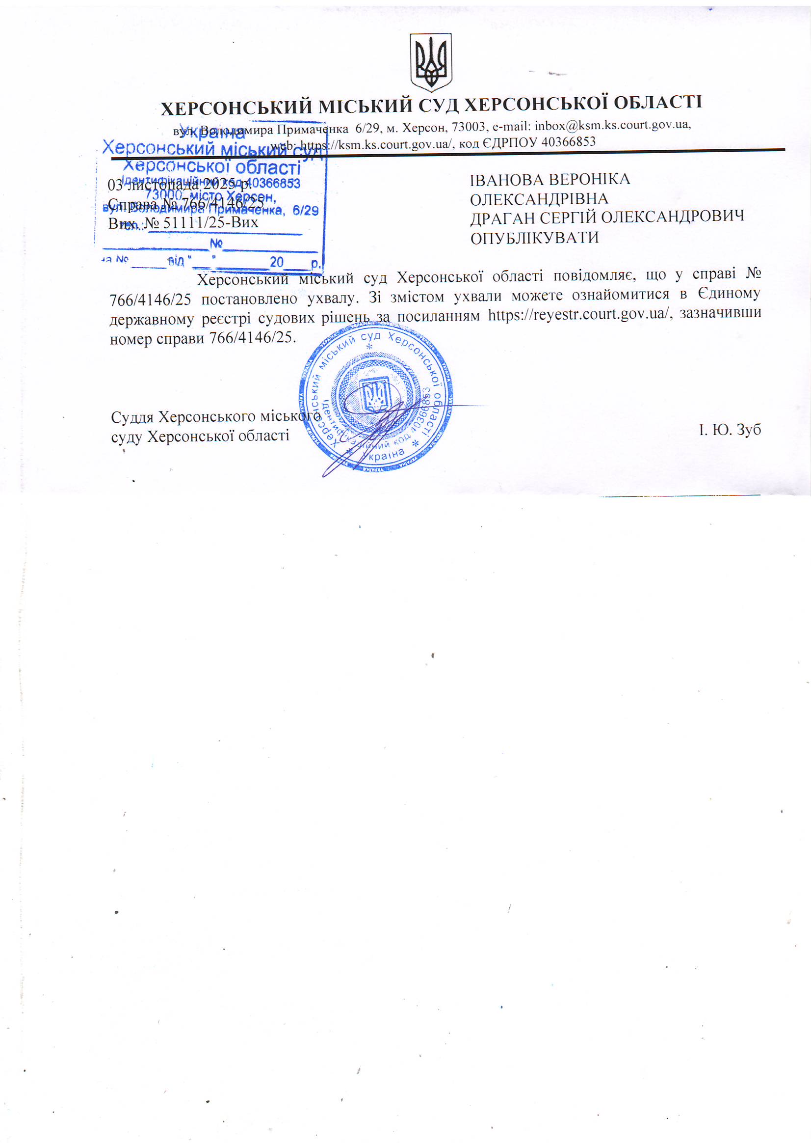 Оголошення для Іванової Вероніки Олександрівни, Драгана Сергія Олександровича про постановленняухвали