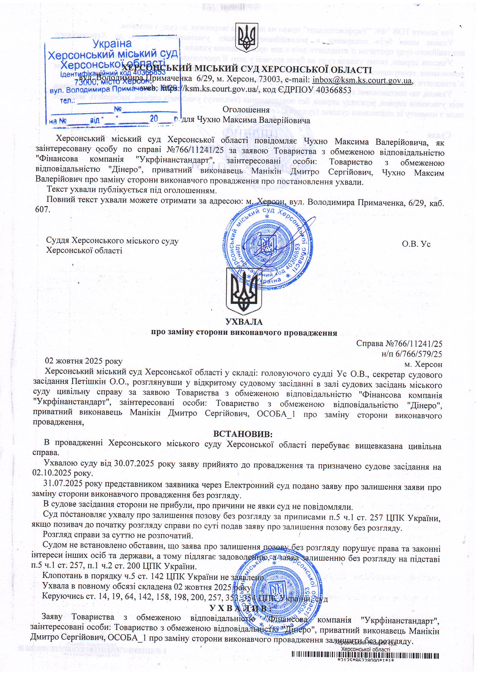 ПОВІДОМЛЕННЯ ПРО РОЗГЛЯД СПРАВИ БЕЗ ВИКЛИКУ СТОРІН