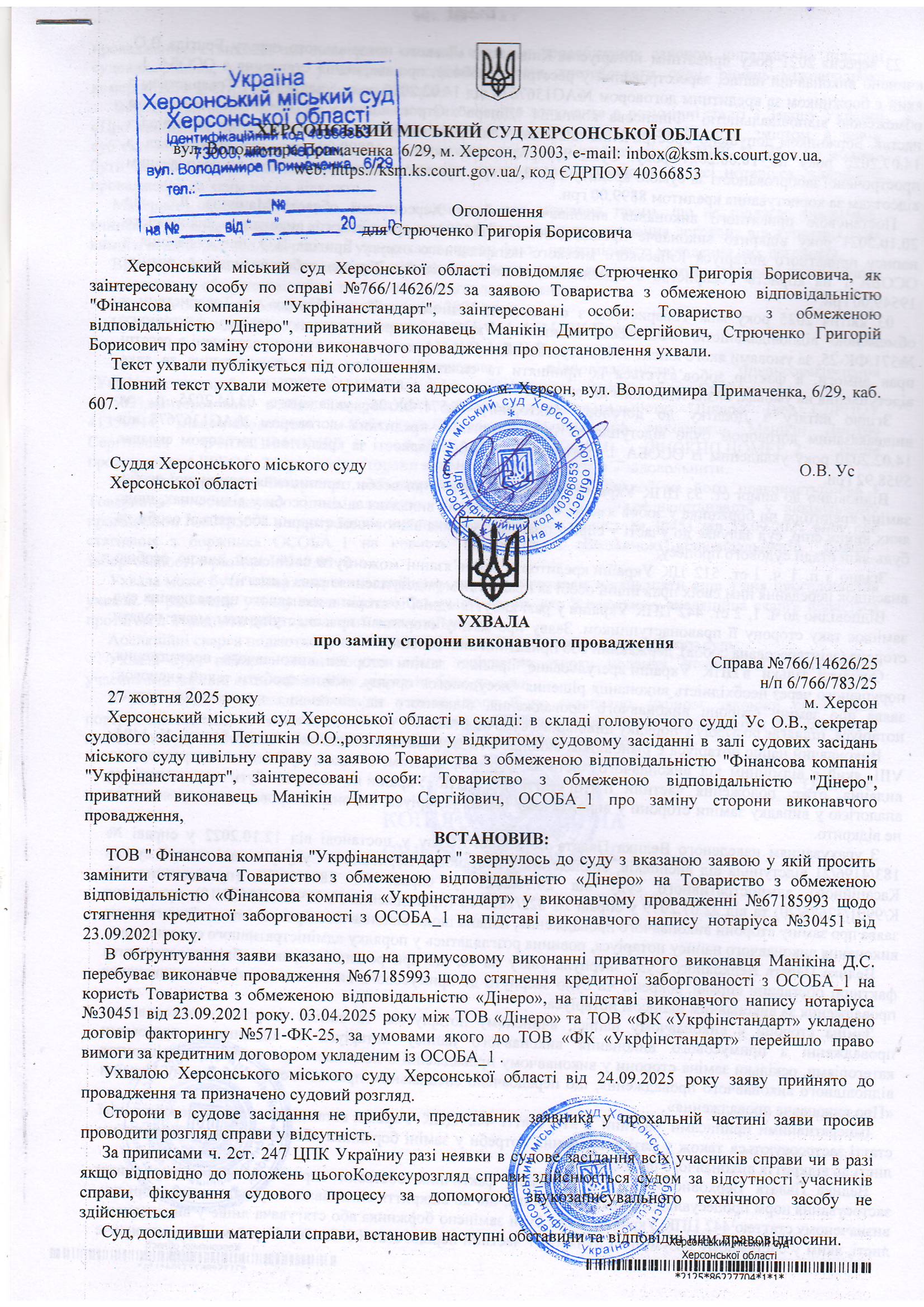 ПОВІДОМЛЕННЯ ПРО РОЗГЛЯД СПРАВИ БЕЗ ВИКЛИКУ СТОРІН