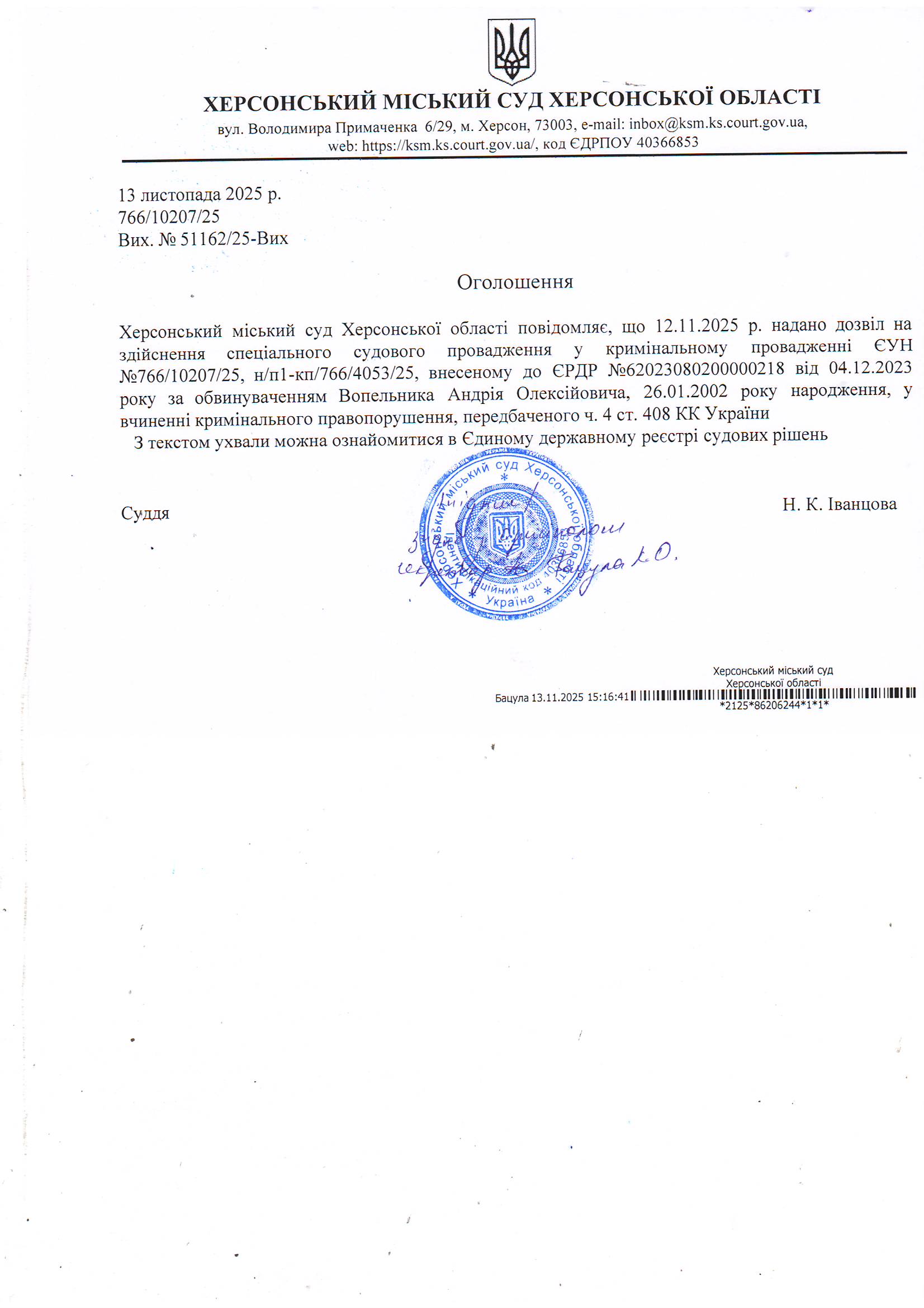Інформація про місцезнаходження Херсонського міського суду Херсонської області