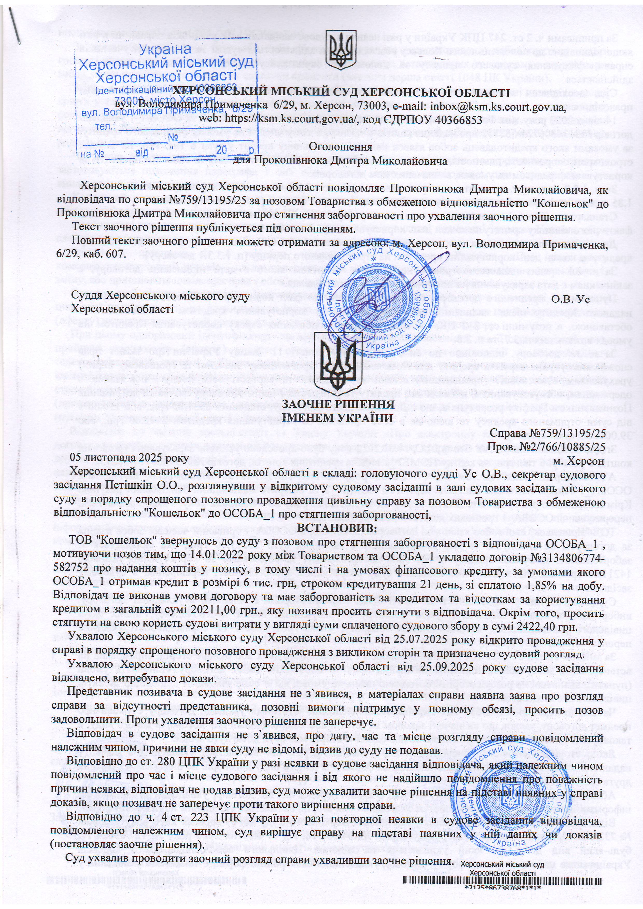 Оголошення для Прокопівнюка Дмитра Миколайовича